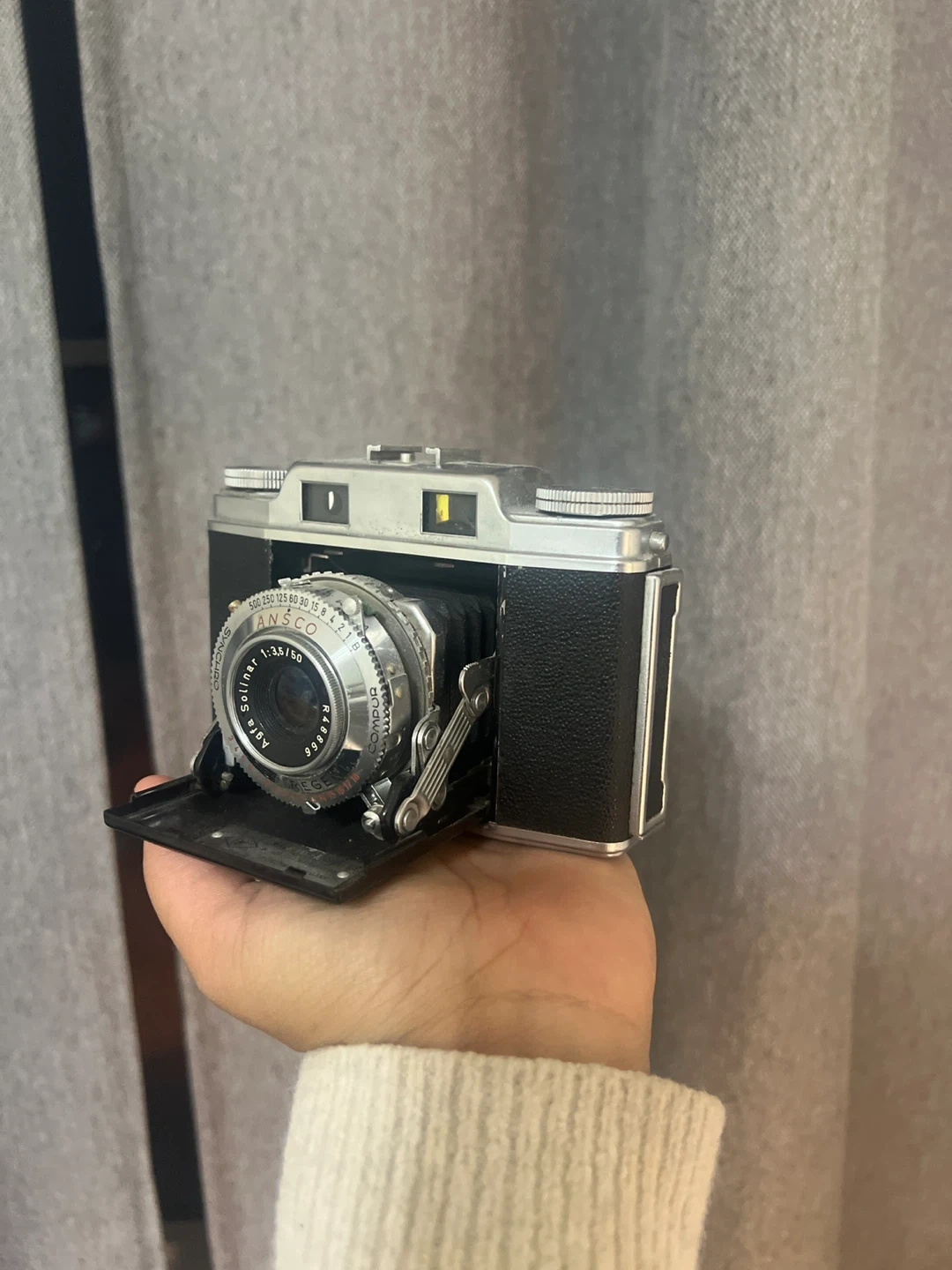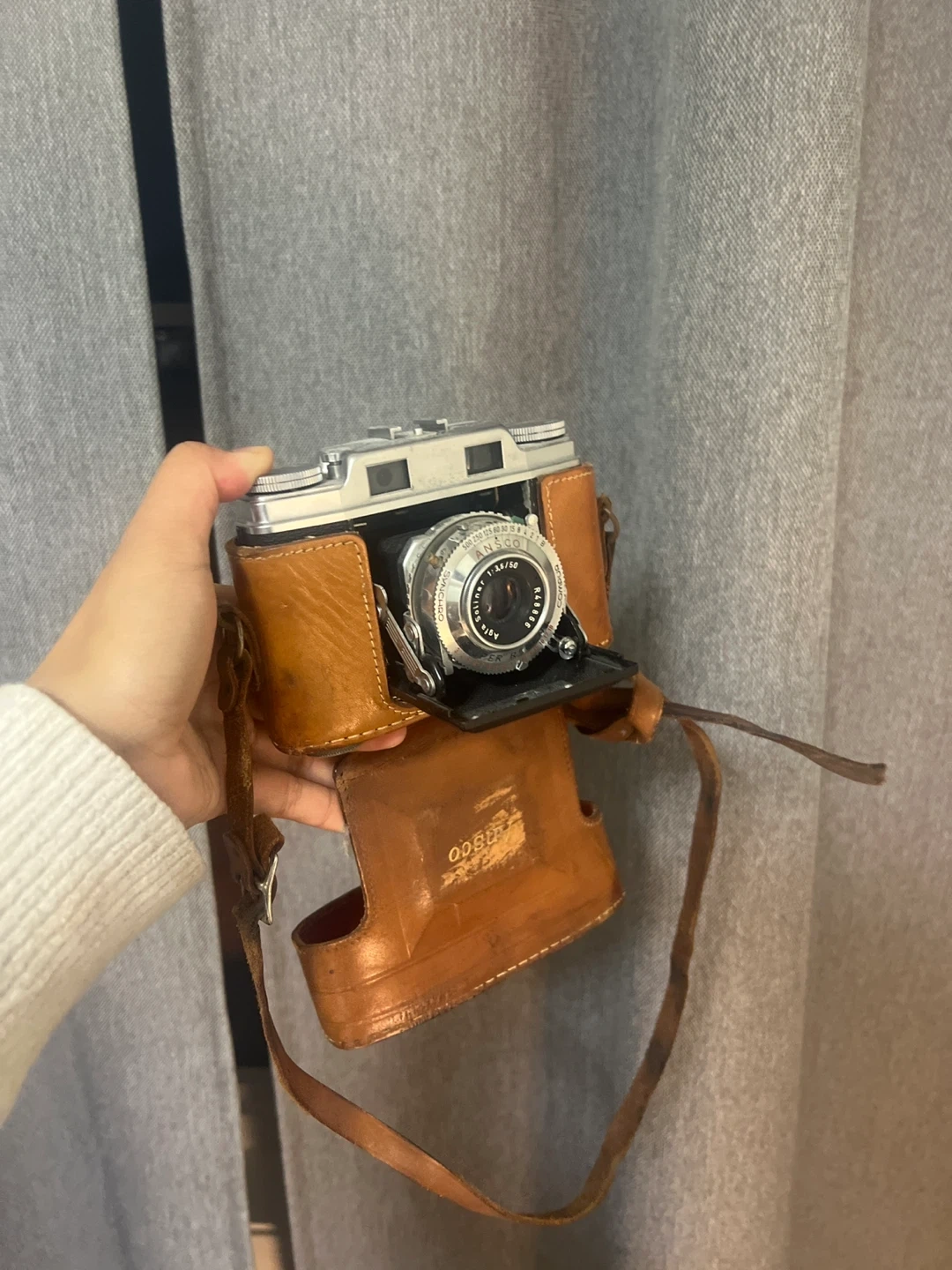 Selling a vintage Ansco camera! It comes with its original leather case. A cool piece for collectors or photography enthusiasts. Not too sure if it works. Haven’t tested it. Leather strap broken. Selling as is.