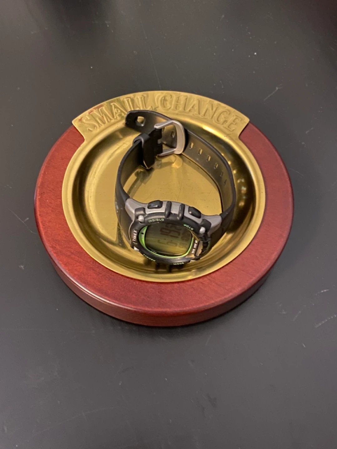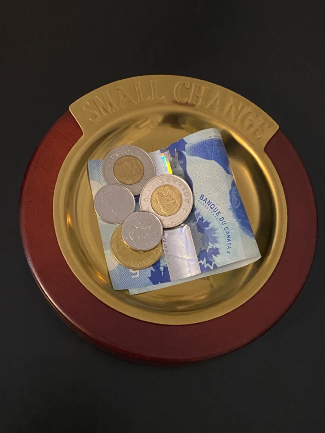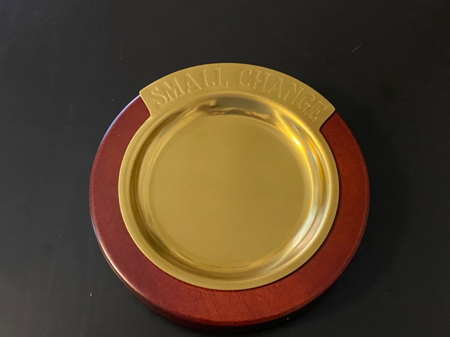 Here's a “small change” 1970’s round coin tray! It's a great way to keep your coins organized and in one place. It's made of wood and brass and it's in good condition. Measures 6” in diameter. Felt bumpers on bottom for protection. Money and watch not included. Cash and pick up only, Cawthra and Lakeshore area in Mississauga.