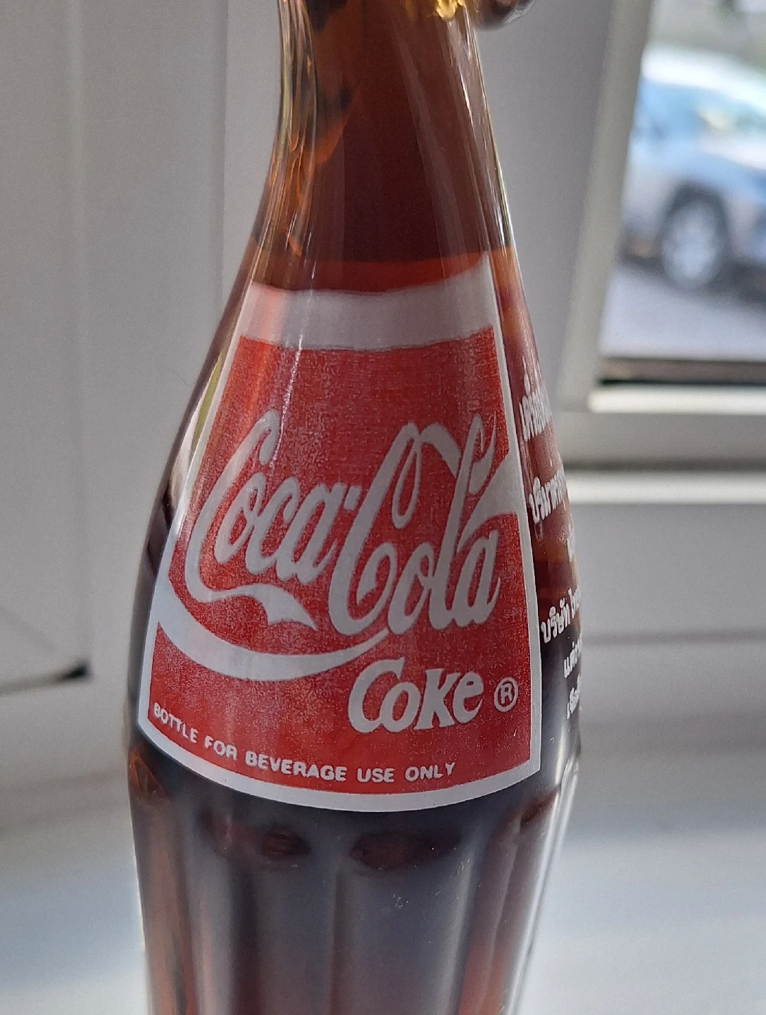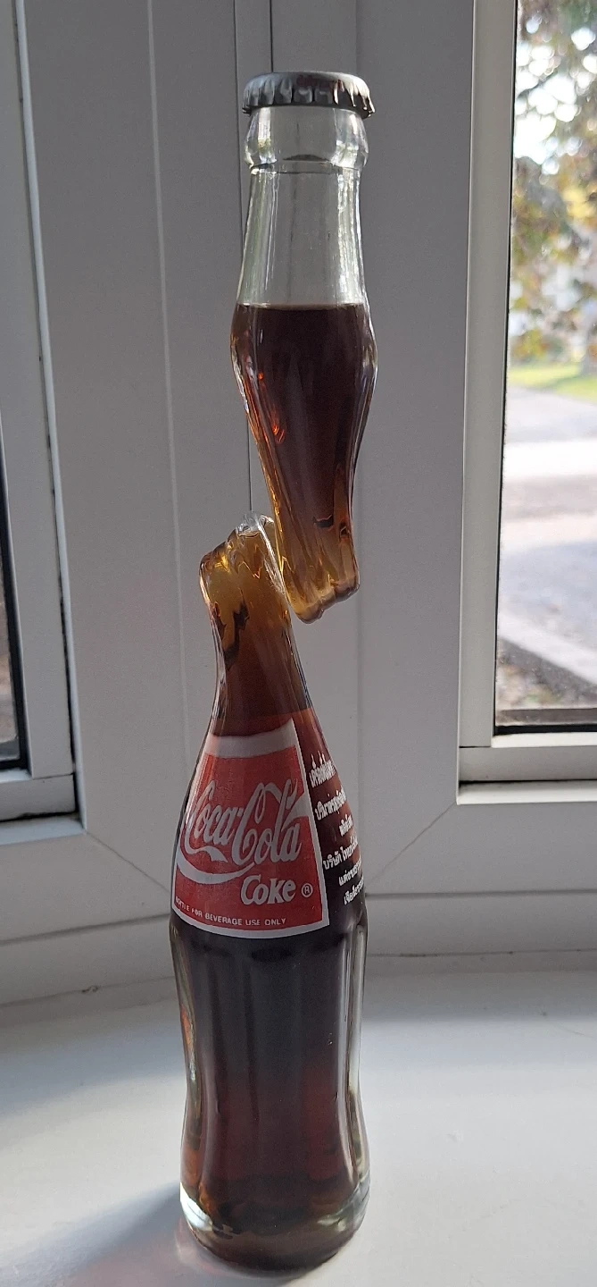 71Selling a vintage Coca-Cola bottle. Twisted neck, from 1980s. unopened. It's a unique piece with the classic Coca-Cola logo.