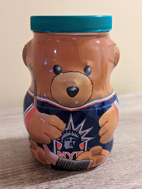 If you are seeing this Ad, then this item is still available This sale is for 1 very nice and clean Vintage 2002 Kraft Peanut Butter Glass Jar Coin Bank NHL Series New York Rangers. Excellent condition. No chips or cracks. One small rip hole in the label on the back right. View photos. Measures: • 7.25 x 5 x 5" Pick-up in Pickering ONLY This item comes from a smoke-free home.