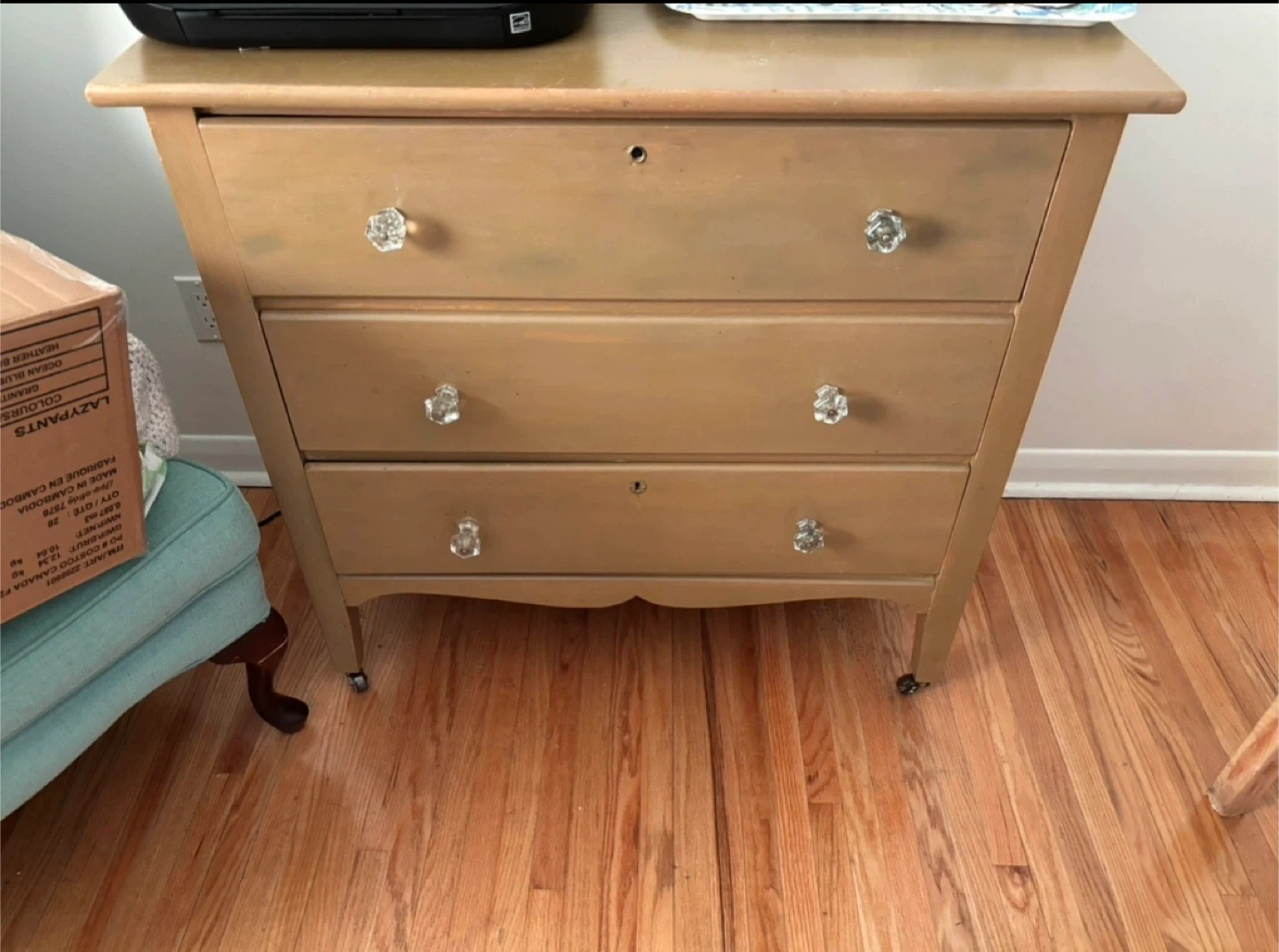 65Selling a vintage three-drawer dresser! It has a charming, classic look with crystal-style knobs. Perfect for adding some character to your bedroom or living space. The dresser is in good condition and has plenty of storage space. Cash only Pick it up only in Rathburn rd