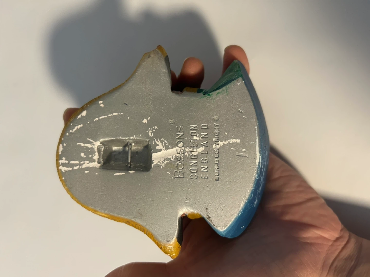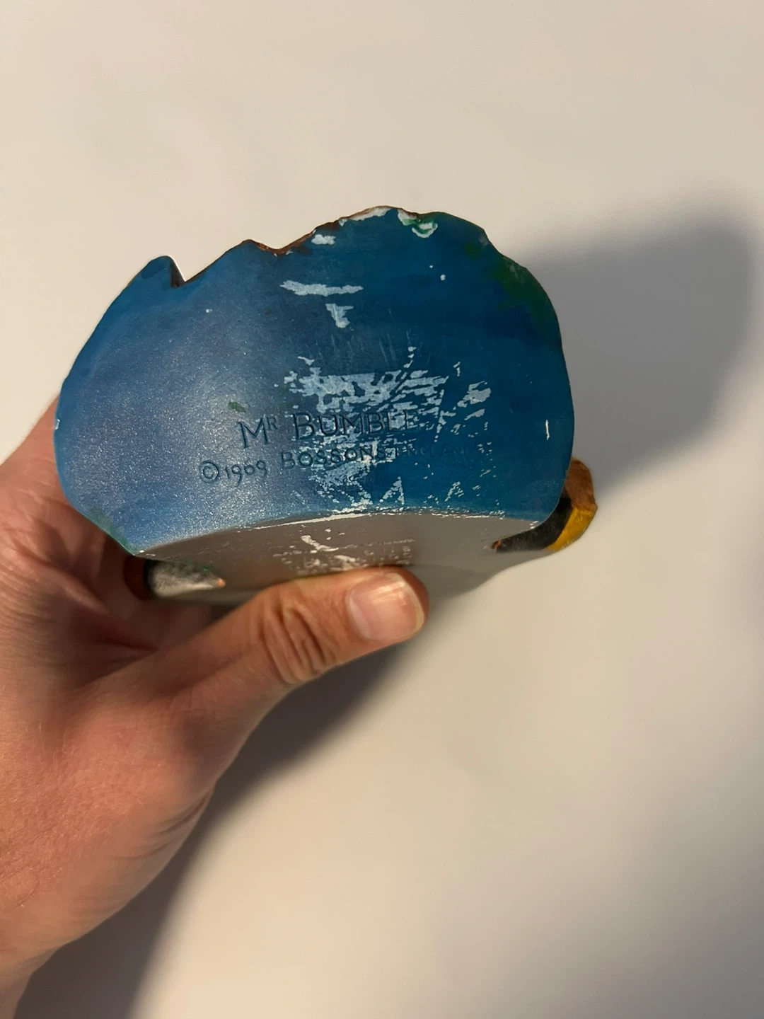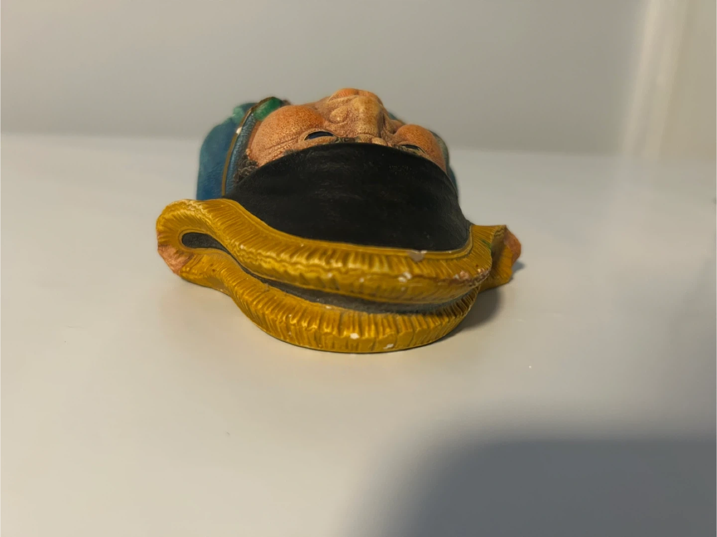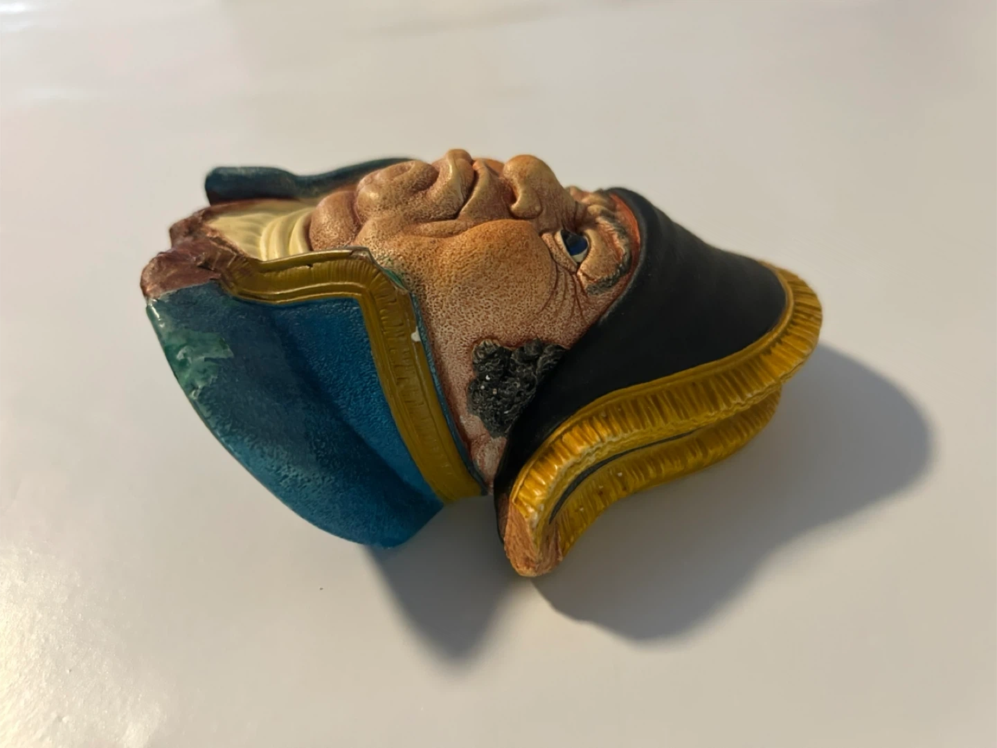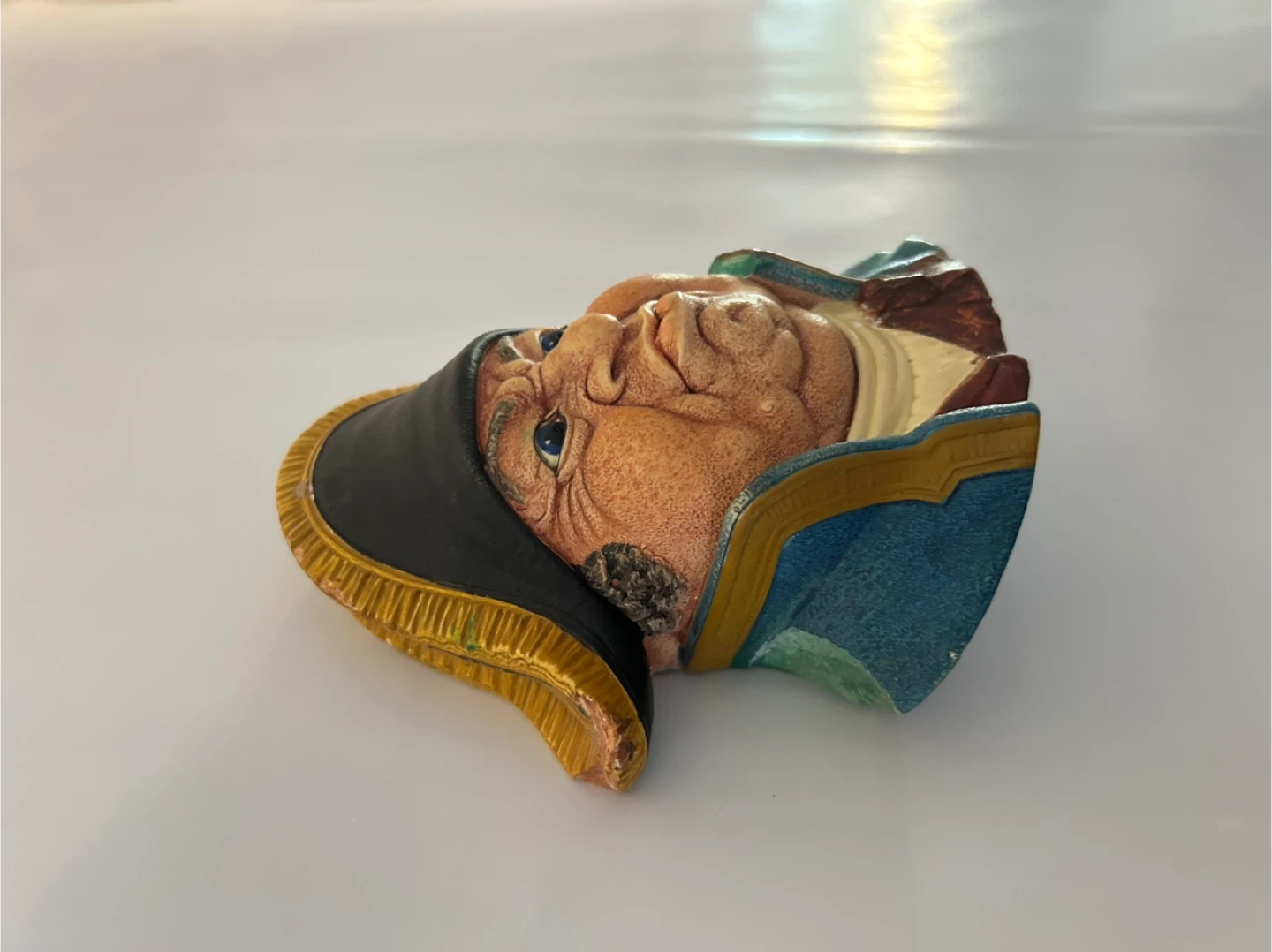 This is a vintage admiral character head, possibly a decorative piece or a unique item for collectors. It has a distinctive look with a stern expression and detailed facial features. The admiral is wearing a hat and coat, with a ruler in one of the photos for size reference. It would be a great addition to any collection