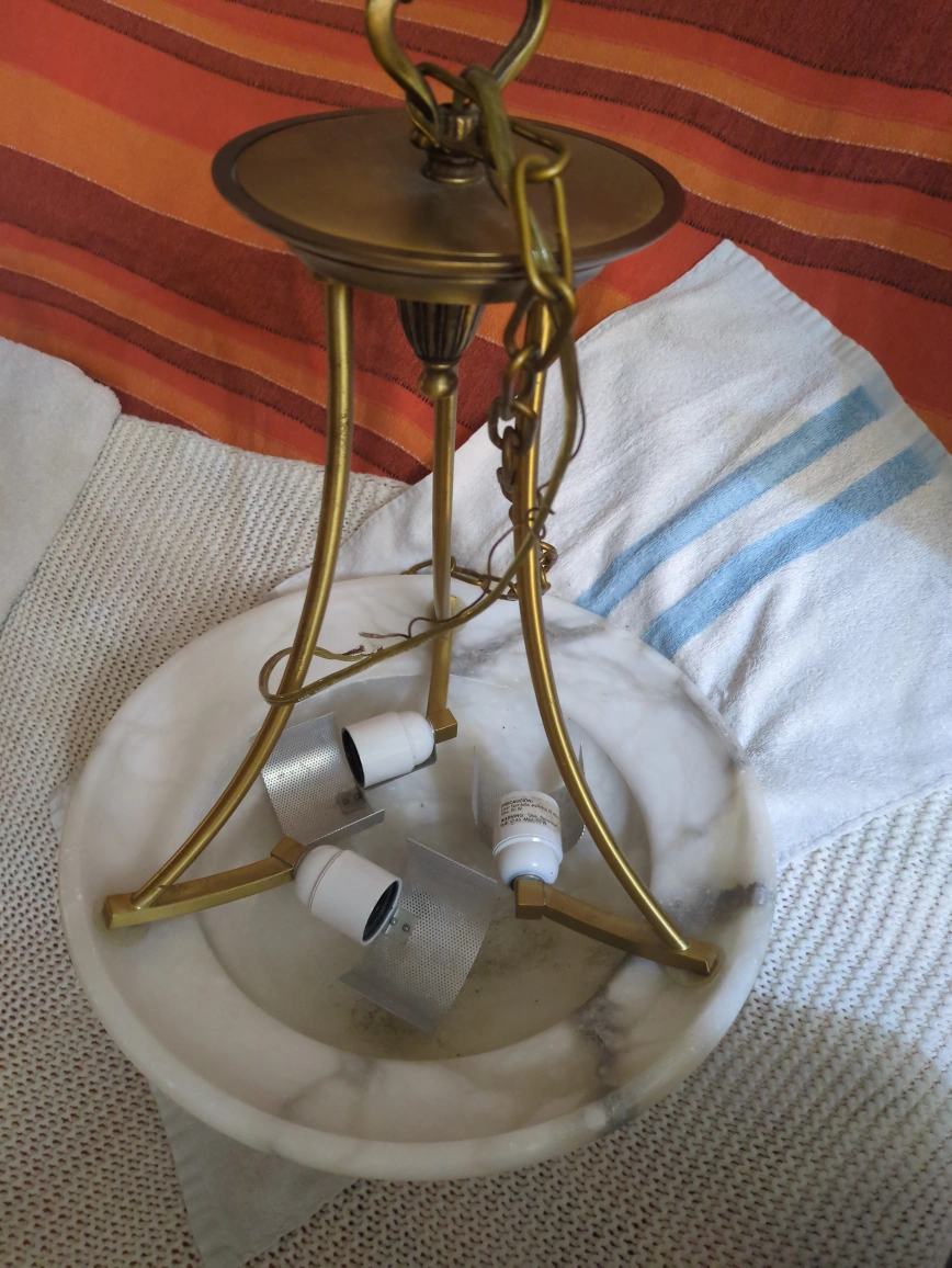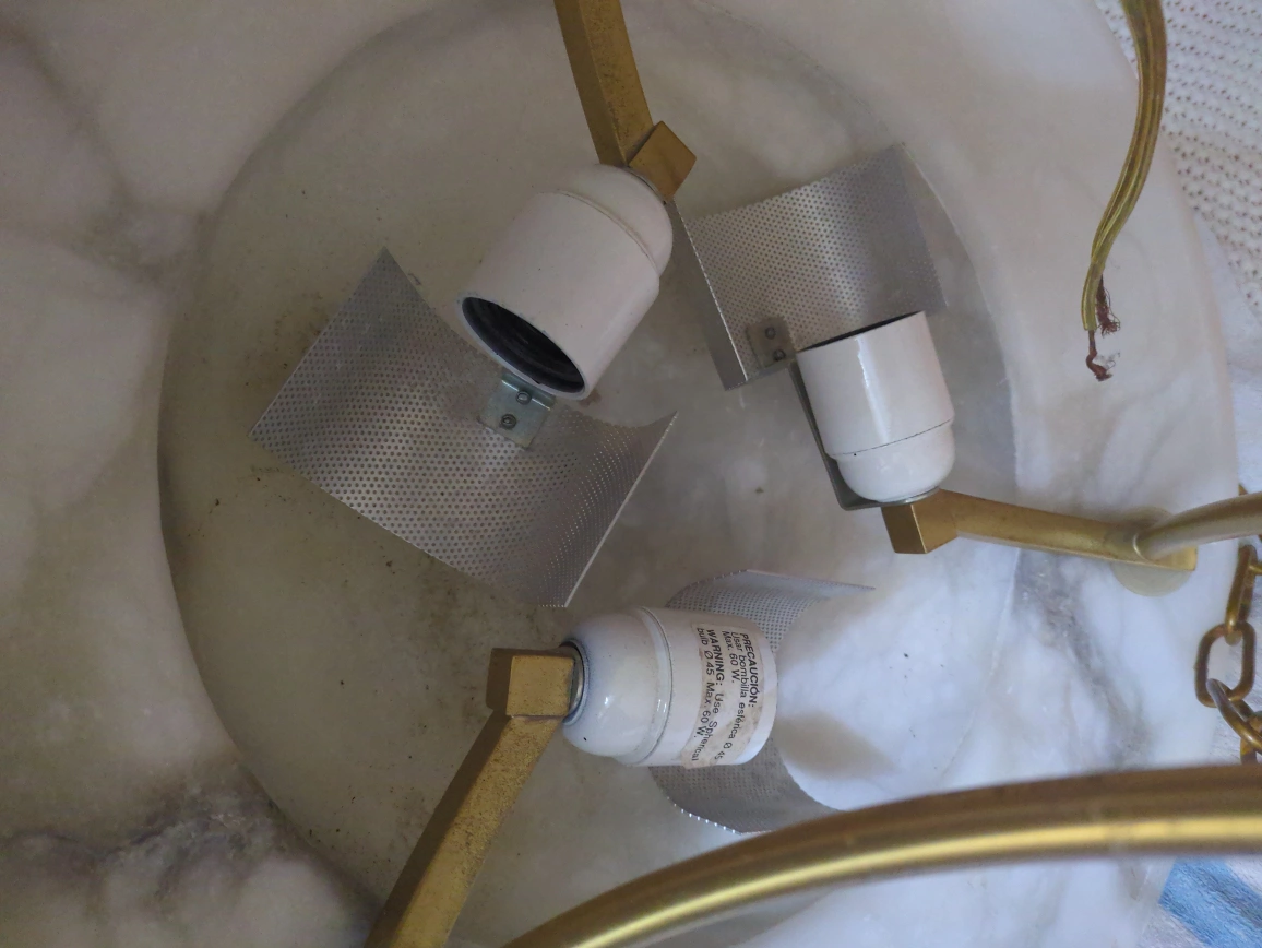 Vintage Alabaster & Brass Chandelier