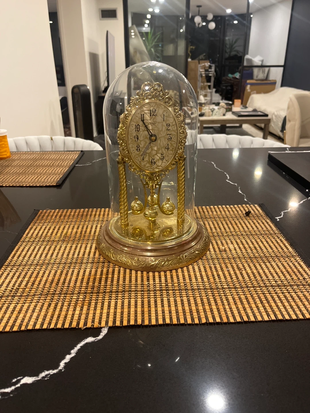 236Selling a beautiful vintage anniversary clock that comes with a glass dome. It has a lovely gold finish and intricate detailing. Perfect as a decorative piece for your home!