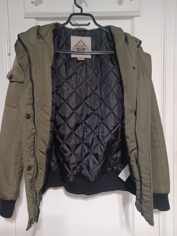 55Beaver Canoe (sister company of Roots)Olive green bomber jacket. Quilted lining.