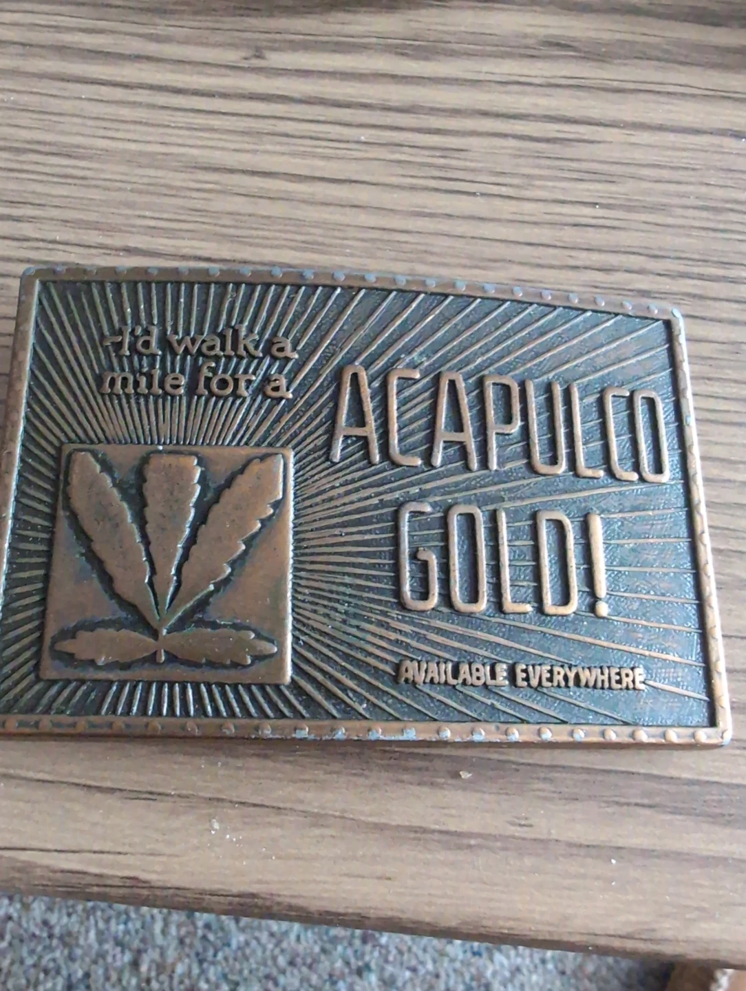 226Selling a collection of vintage belt buckles. Includes a Miller High Life buckle, a Crosman buckle, one that says "I'd Rather Be Fishing", and an Acapulco Gold buckle. Great for collectors or anyone looking to add some vintage flair to their wardrobe. Buy complete set for $110 or if buying singles each price is : Miller Lite $15, Acapulco Gold $15, Fishing buckle $15, Space Shuttle $25, Crossman $25, Trolley $25, Train $35. None of them were worn