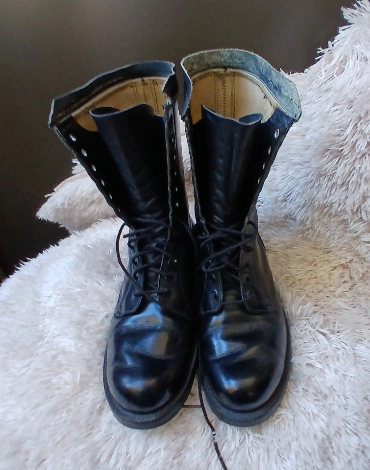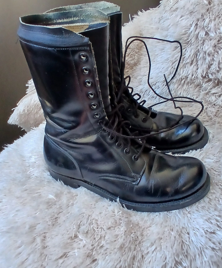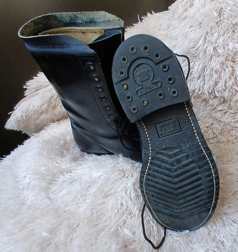 Selling a pair of black leather military boots. They have a BiltRite sole and are in good condition. Perfect for anyone looking for a sturdy and reliable pair of boots!Measures 12 inches which I believe is a size 11