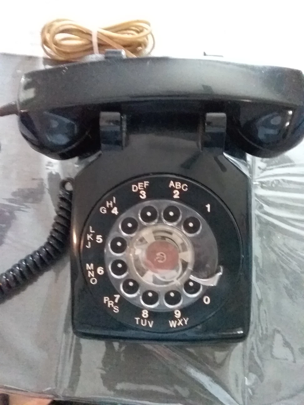 Black rotary phone. Not tested as I don't have a landline. Phone is in very good condition. I removed the center paper with a previous phone number on it. Pick up in Bolton, x posted.
