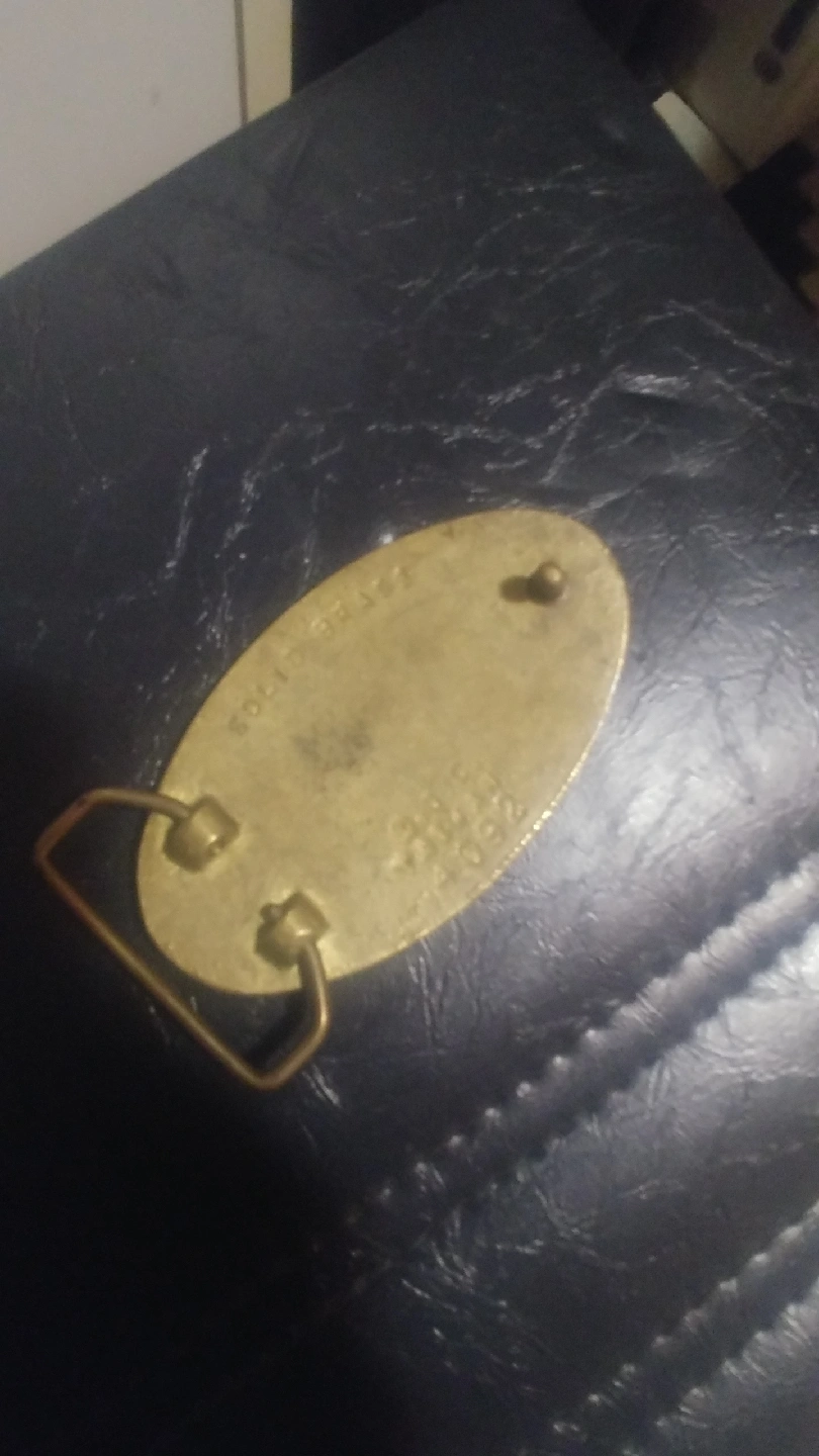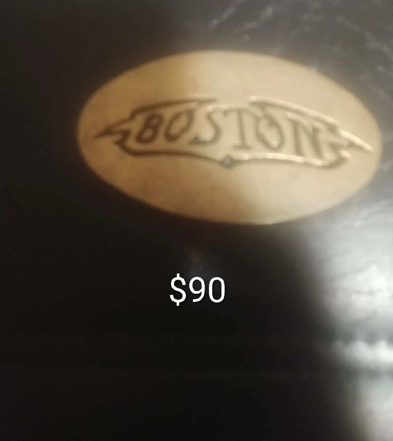 10Selling a vintage belt buckle made of solid brass. It features the word 'BOSTON' in a stylized design. It's in good condition and ready to add some character to your wardrobe