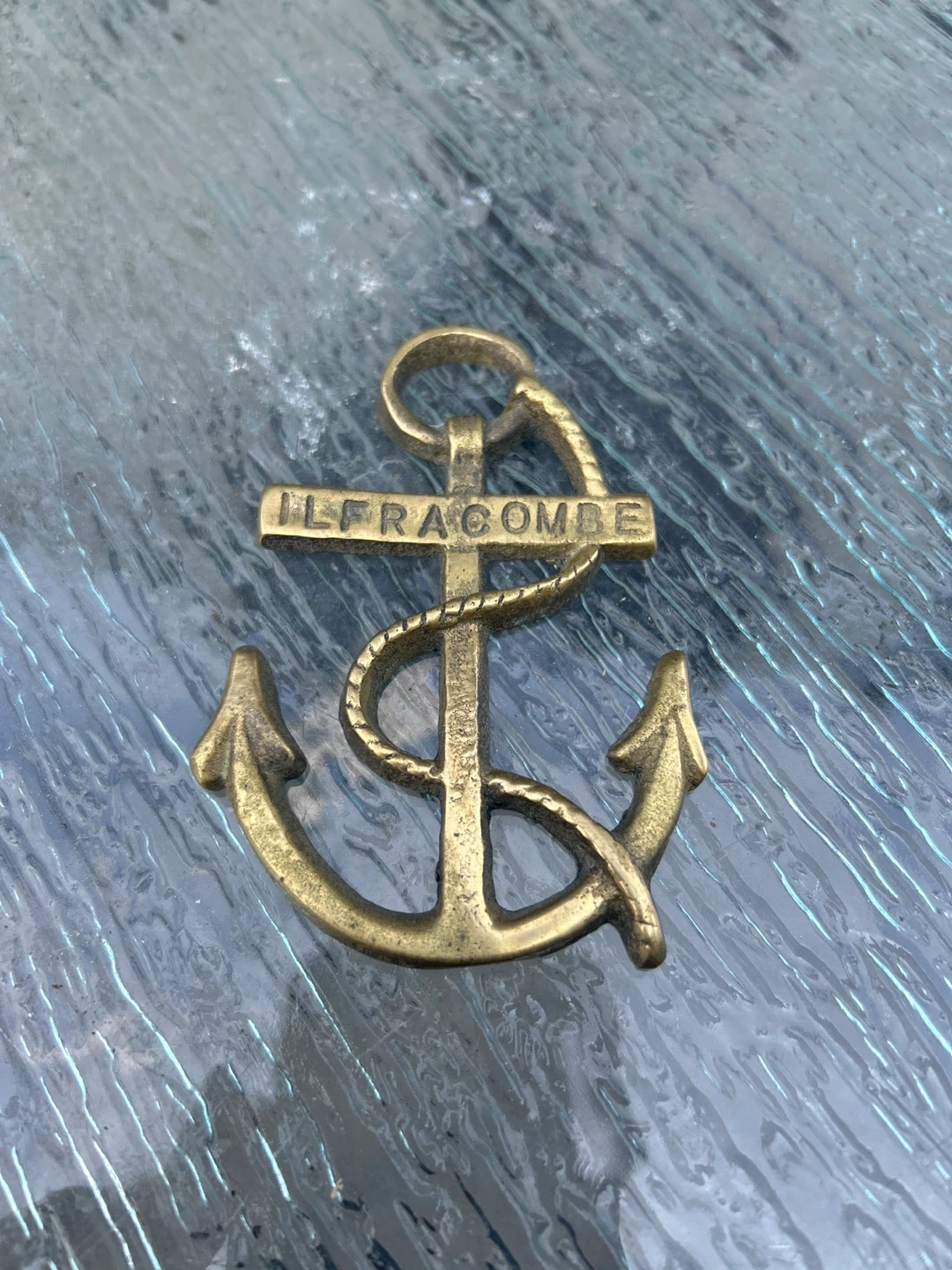 111I'm selling a vintage brass anchor featuring the word 'Ilfracombe'. It measures approximately 2 inches in height. A unique piece for nautical enthusiasts or collectors!