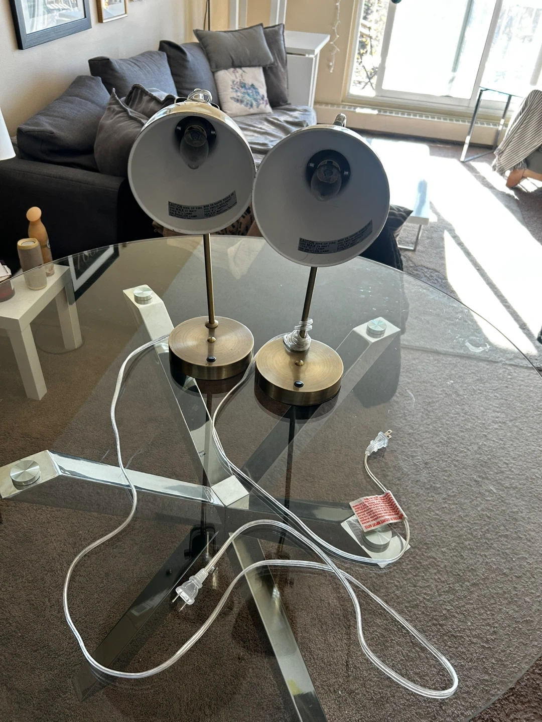 60Selling two vintage brass lamps. They are in great condition and would look great on a desk or side table. They have a classic look and feel!