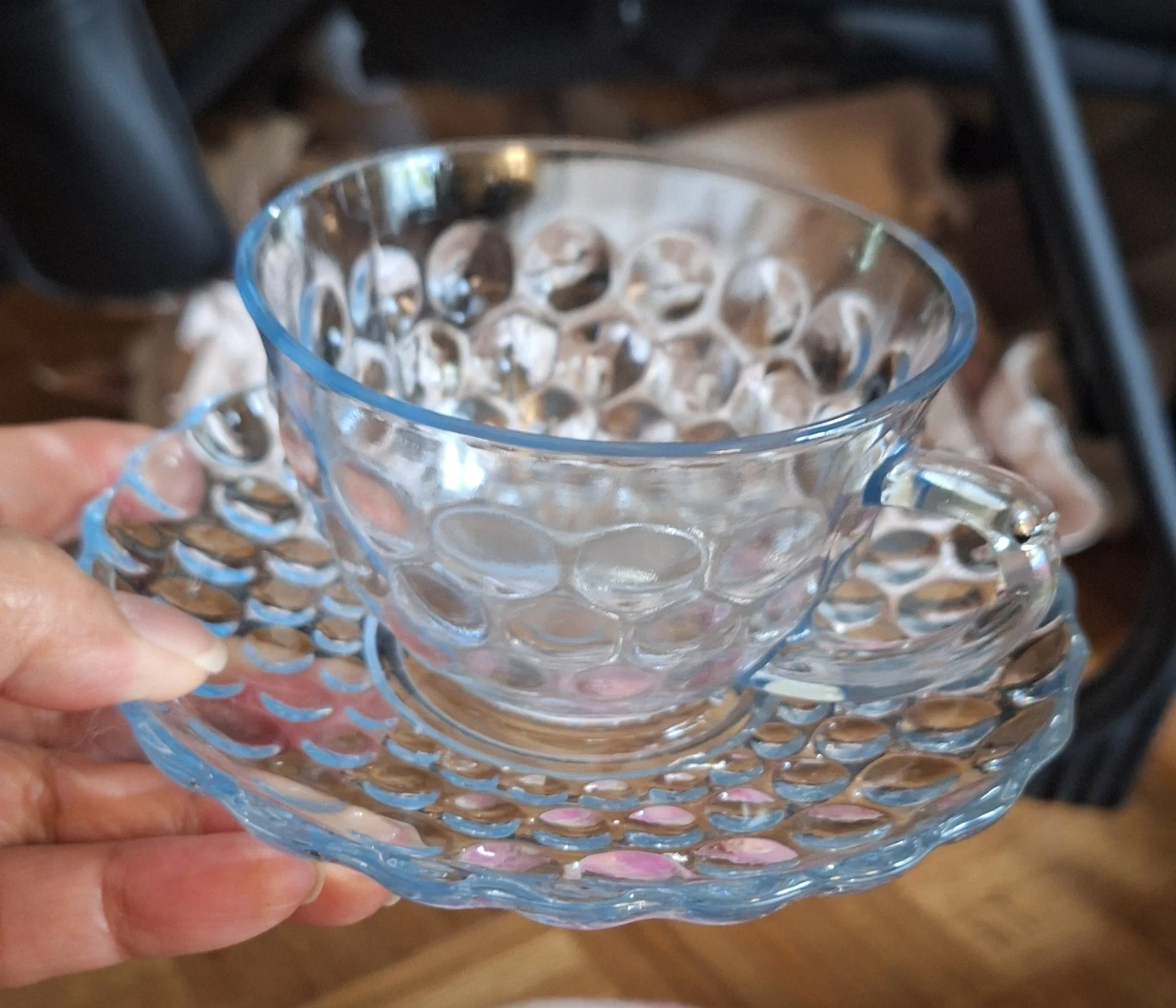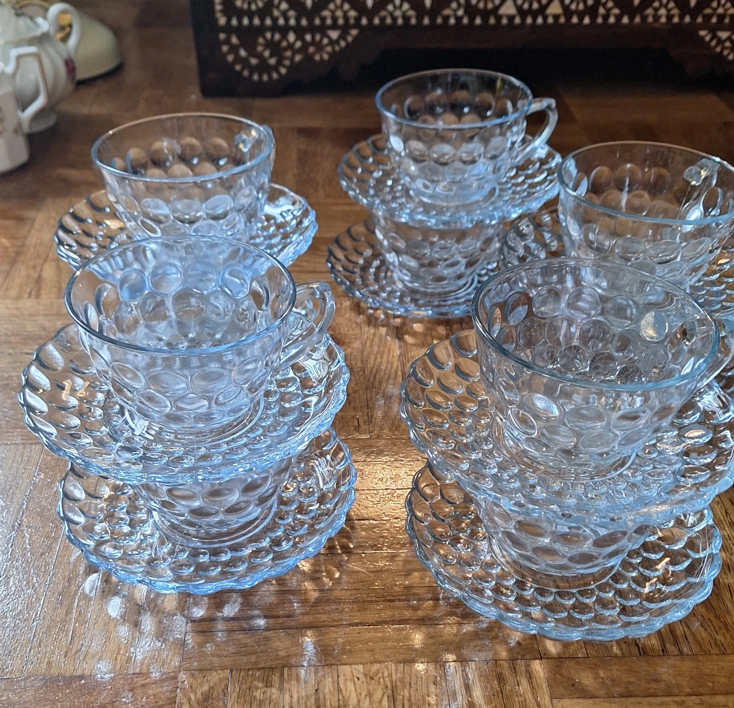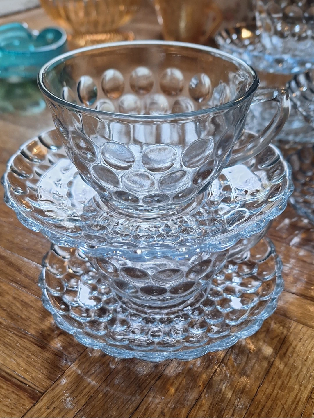18Selling a set of vintage tea cups and saucers with a charming bubble glass design. These are perfect for adding a touch of retro elegance to your tea time or displaying as part of a vintage collection. I have ten cups and saucers in total, all in great condition and ready to be enjoyed! $2.50 per set. P.S. Pick up on Wednesdays or Sundays only at Tim Horton's parking lot 4351 Kingston Road Scarborough across Action Honda