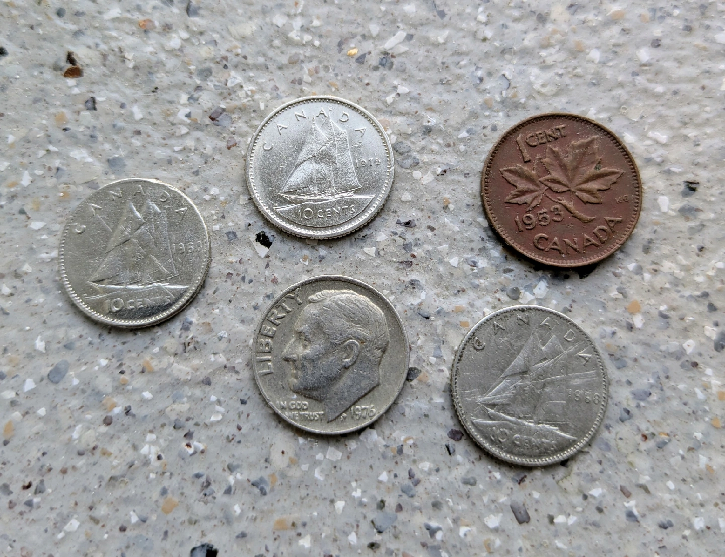 12Selling a collection of vintage coins. Includes a 1968 dime and a 1953 penny
