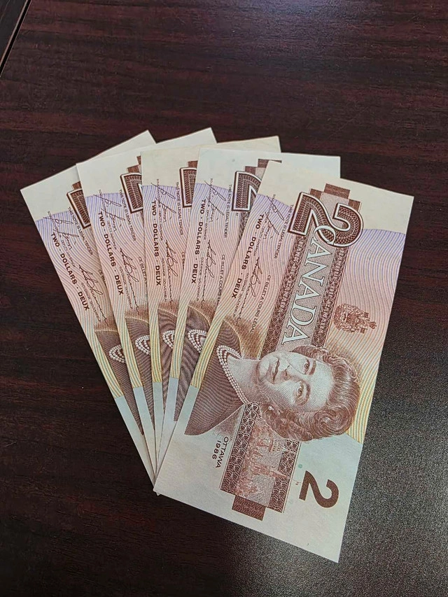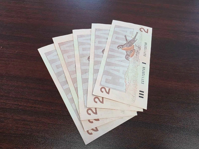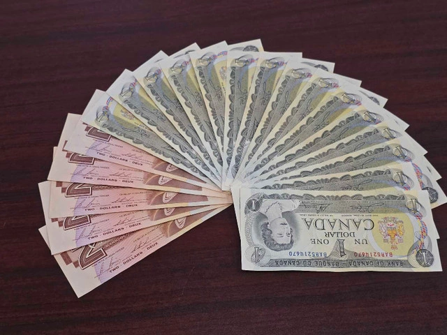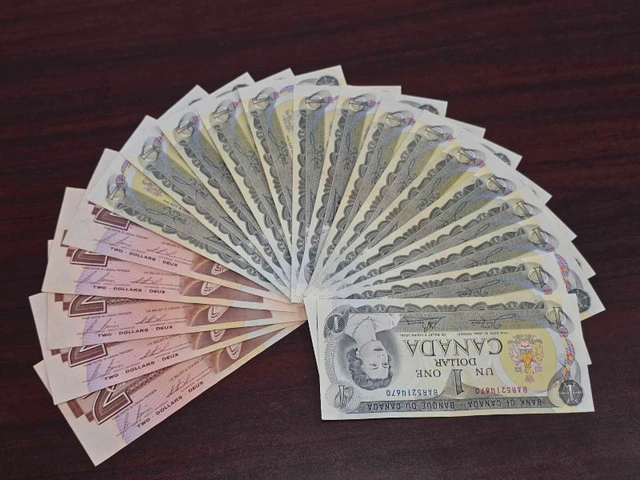 60Excellent condition, I believe these weren't even in circulation. $100 for all. $25 in total, 5 x $2 and 15 x $1 notes. Pick up in our Scarborough North office.