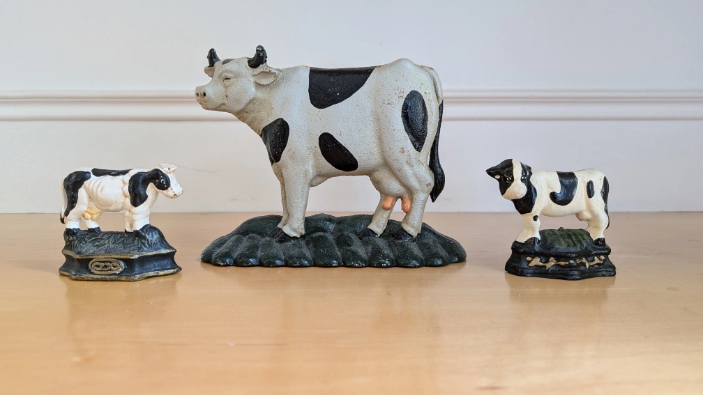 90Set of three cast iron cow doorstops. Perfect gift for someone in the Dairy Capital of Woodstock, ON. Thanks for checking it out!