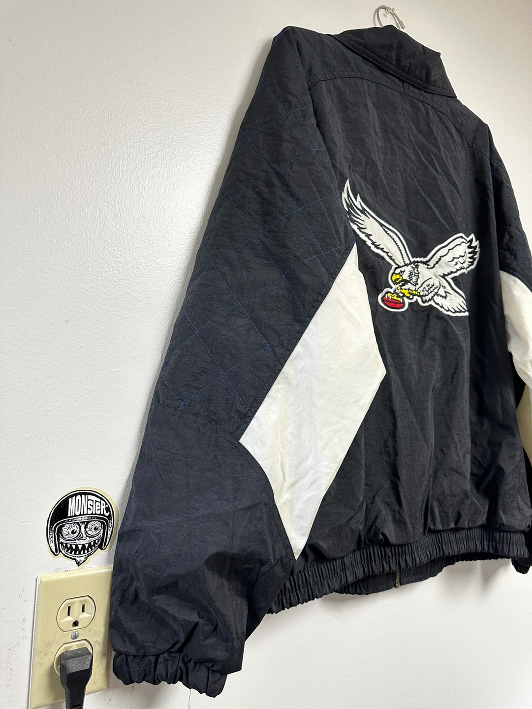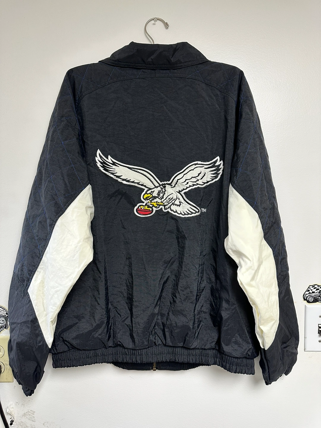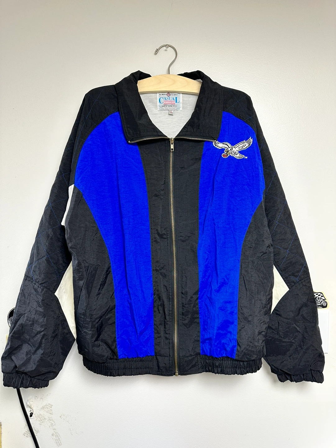 36Size Large, black, blue and white jacket with eagle logo