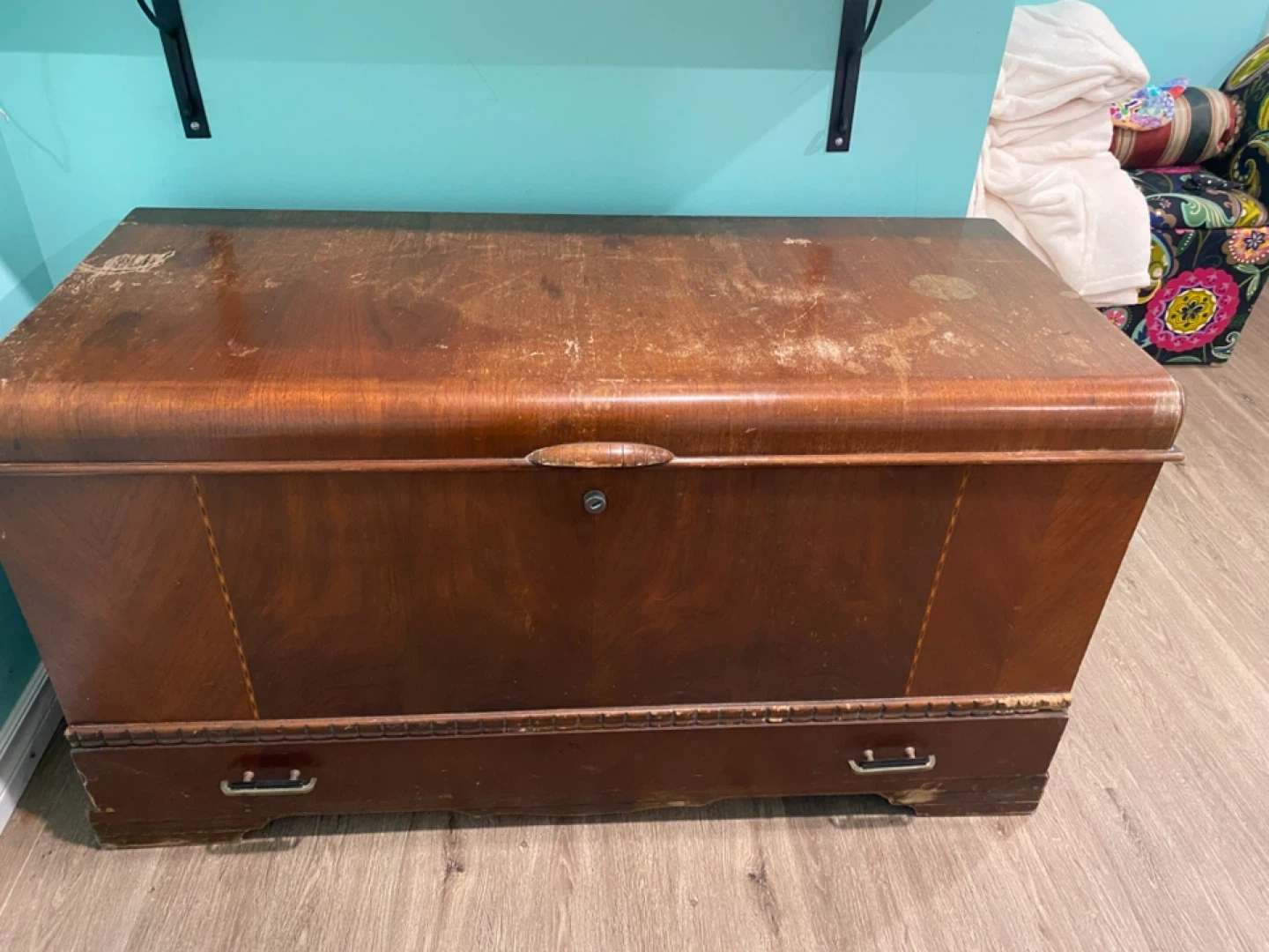 60Selling a vintage cedar chest. It has some wear and tear, but it's still a beautiful piece of furniture. Perfect for storing blankets, linens, or other items.