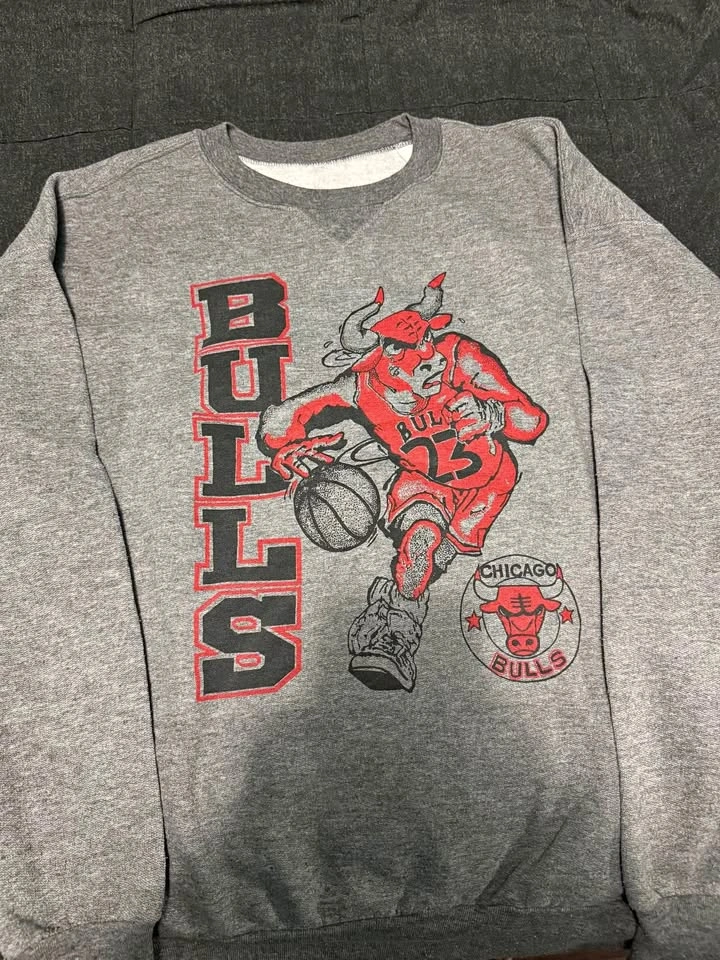 33From the 90’s, this Chicago Bulls Crewneck has seen everything from Jordan’s championship rings to the modern-era team. Size: L/XL (loose large or tight XL)