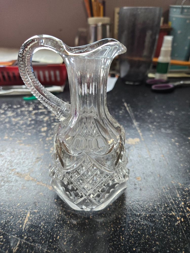 Selling a lovely vintage clear glass pitcher. It has a beautiful design and would make a great addition to any home. It's in great condition and ready for a new home