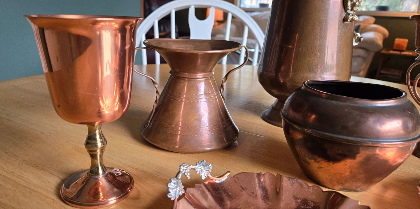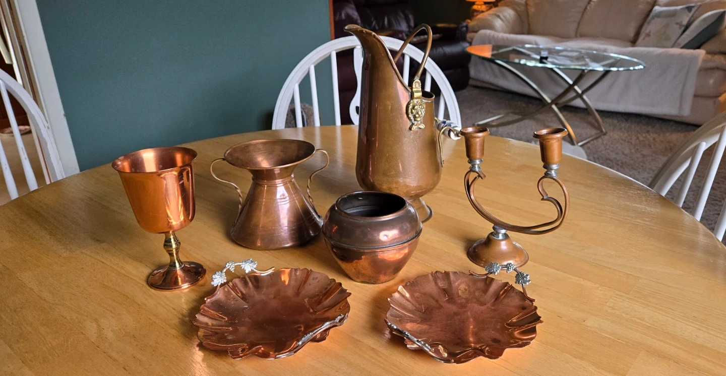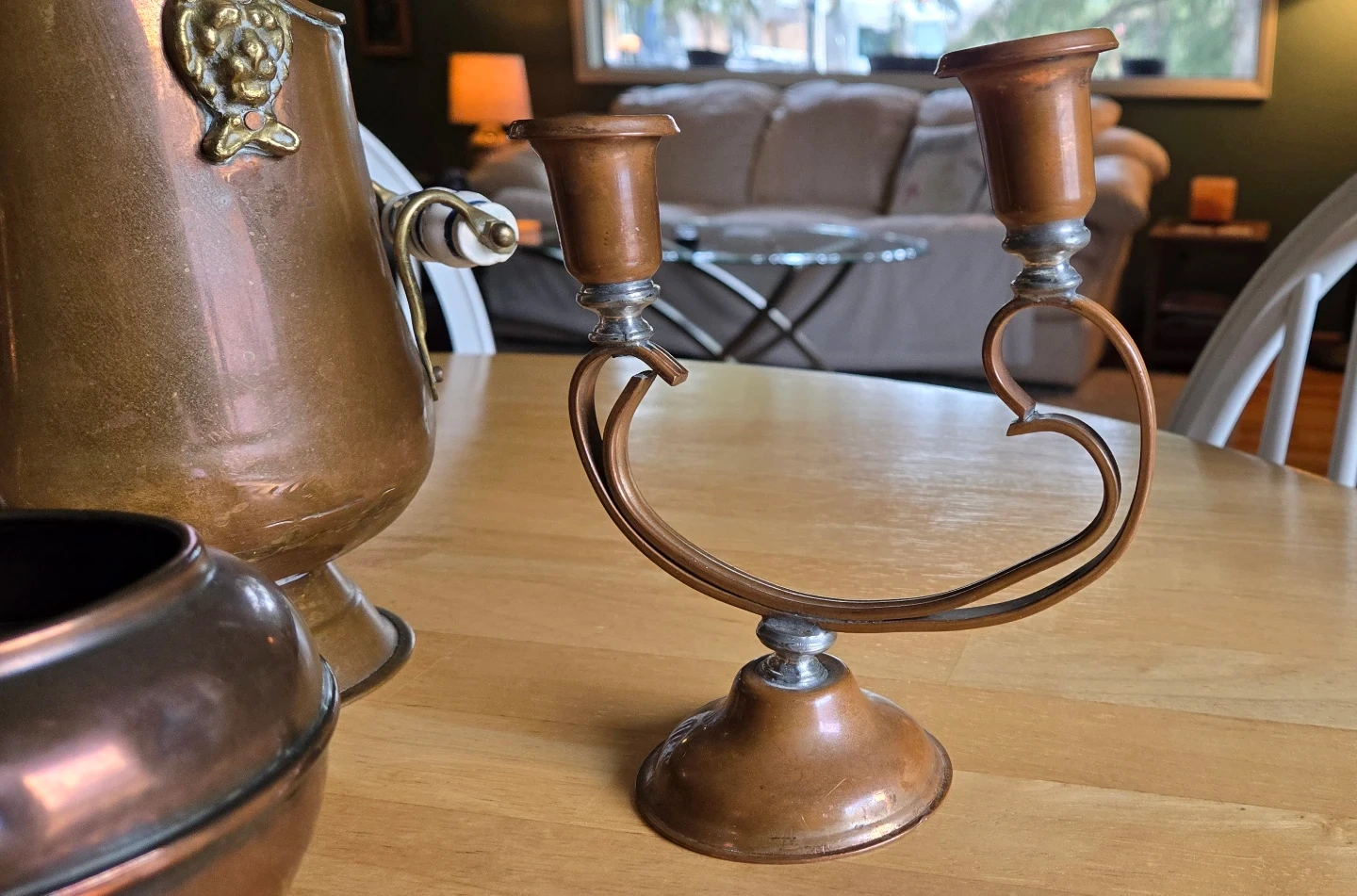 87Group of 7 vintage solid copper items. Most are in really good condition. The small round vessel has some dings. They could use a polish, to really make them shine, unless you prefer the aged patina. The antique coal scuttle alone is being priced online for way more than I'm asking for the entire lot. At least 3 of these items were made in Canada. $50/all. View or pick up in Glenbrook, SW