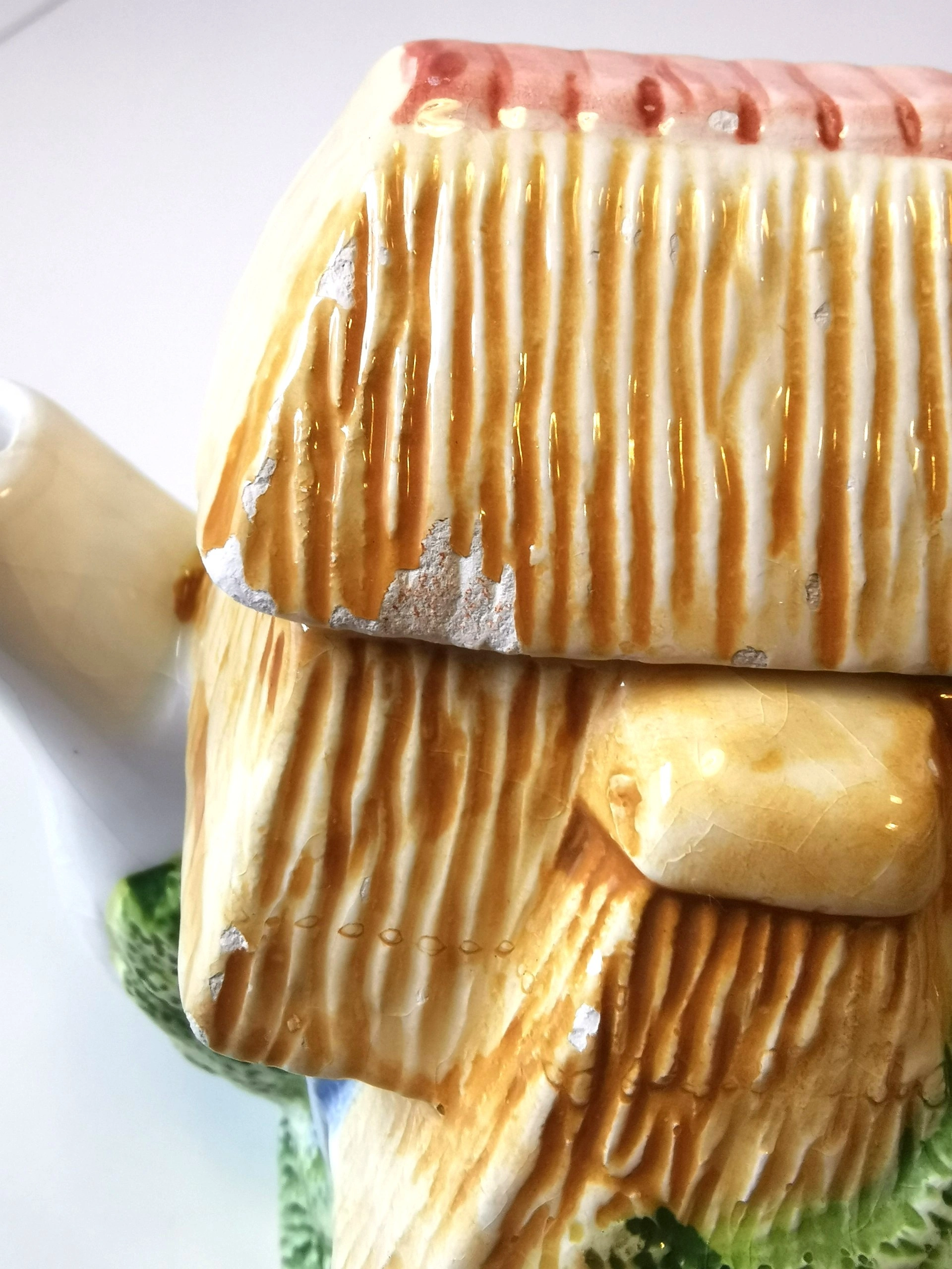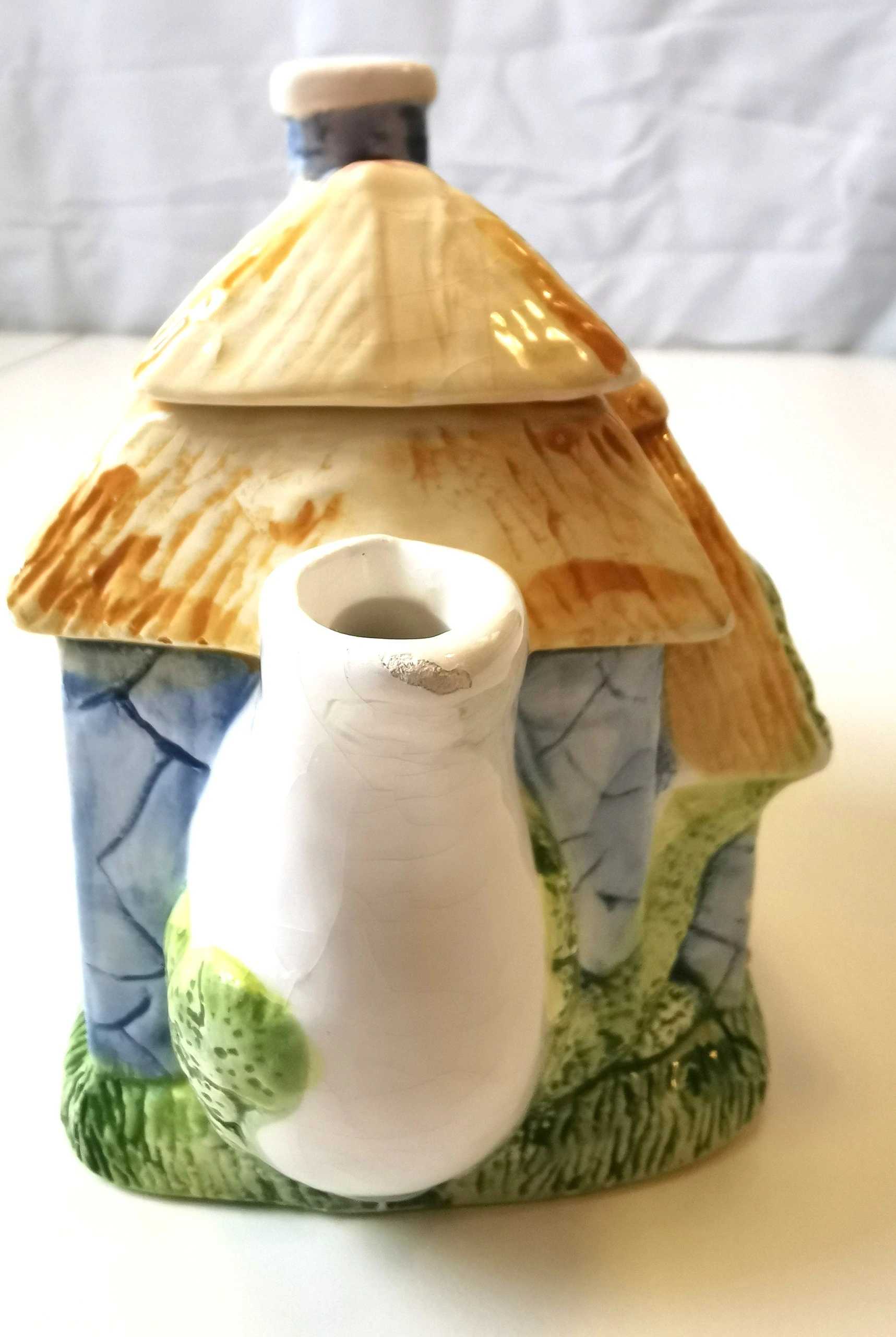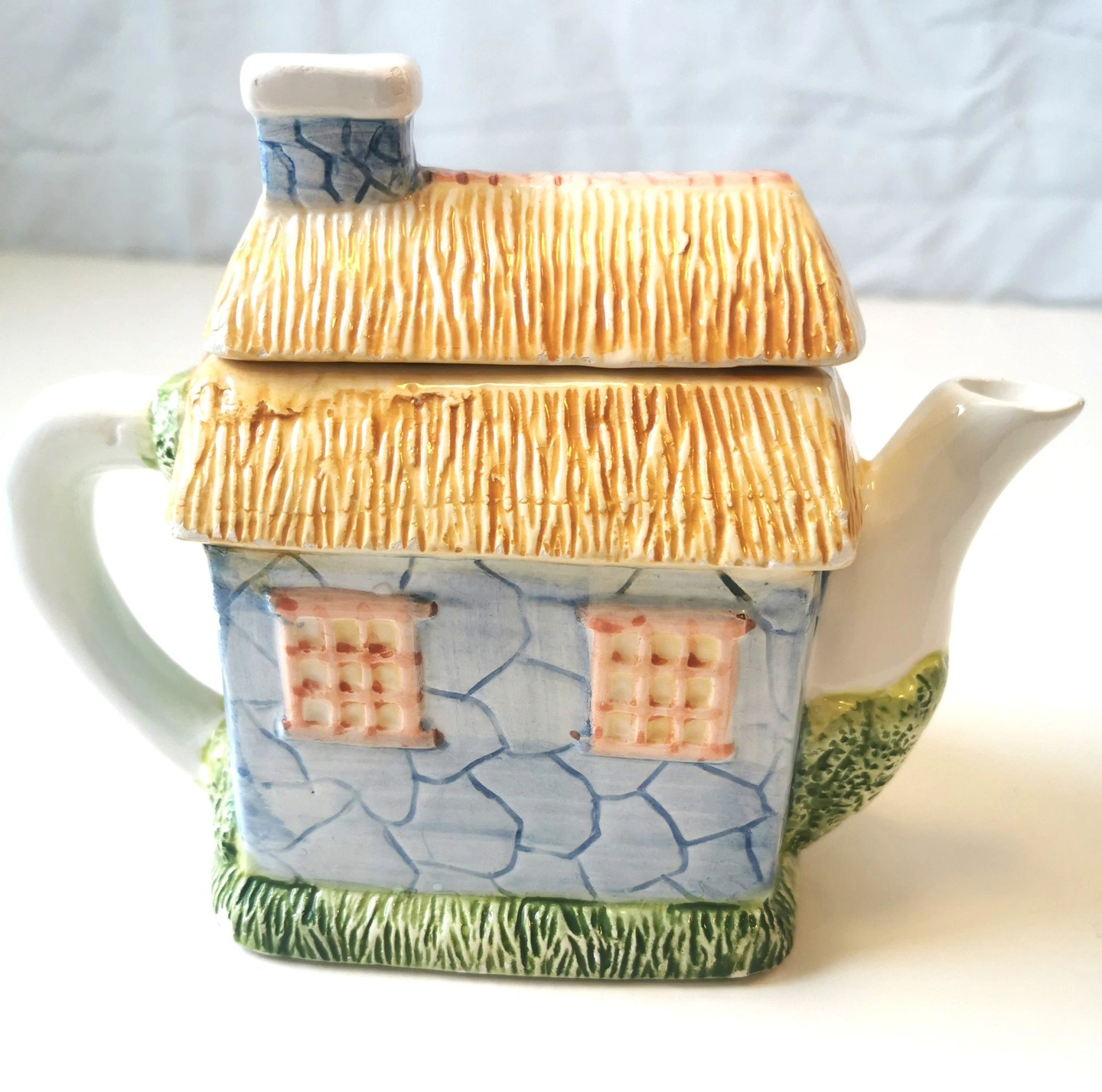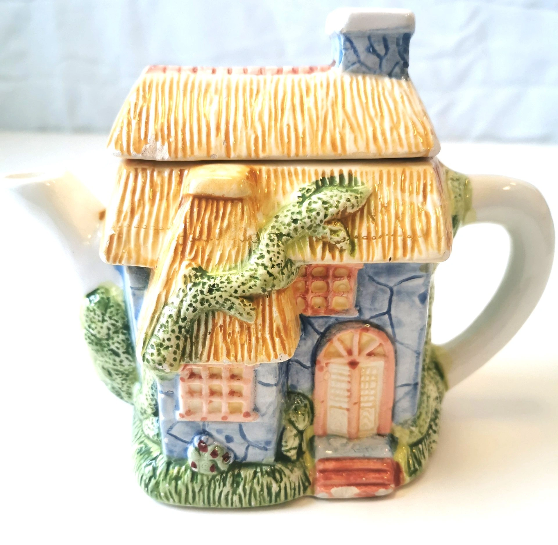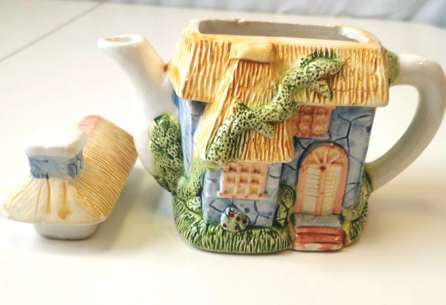 Crafted with a charming aesthetic, this Vintage Cottage Tea Pot complements any ceramic collection. Uniqueness to the piece, making it a delightful find for enthusiasts and collectors alike. The multicolor palette brings a touch of whimsy and warmth to your tea service, sure to brighten any table setting. The tea pot's ceramic construction promises durability and a timeless appeal. Whether used for serving or as a decorative item, it effortlessly blends functionality with a classic design, ideal for those who appreciate the beauty of vintage decor. Dimensions- Height 6 inches, Width 7.5 inches, Depth 4 inches