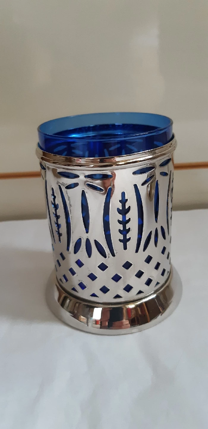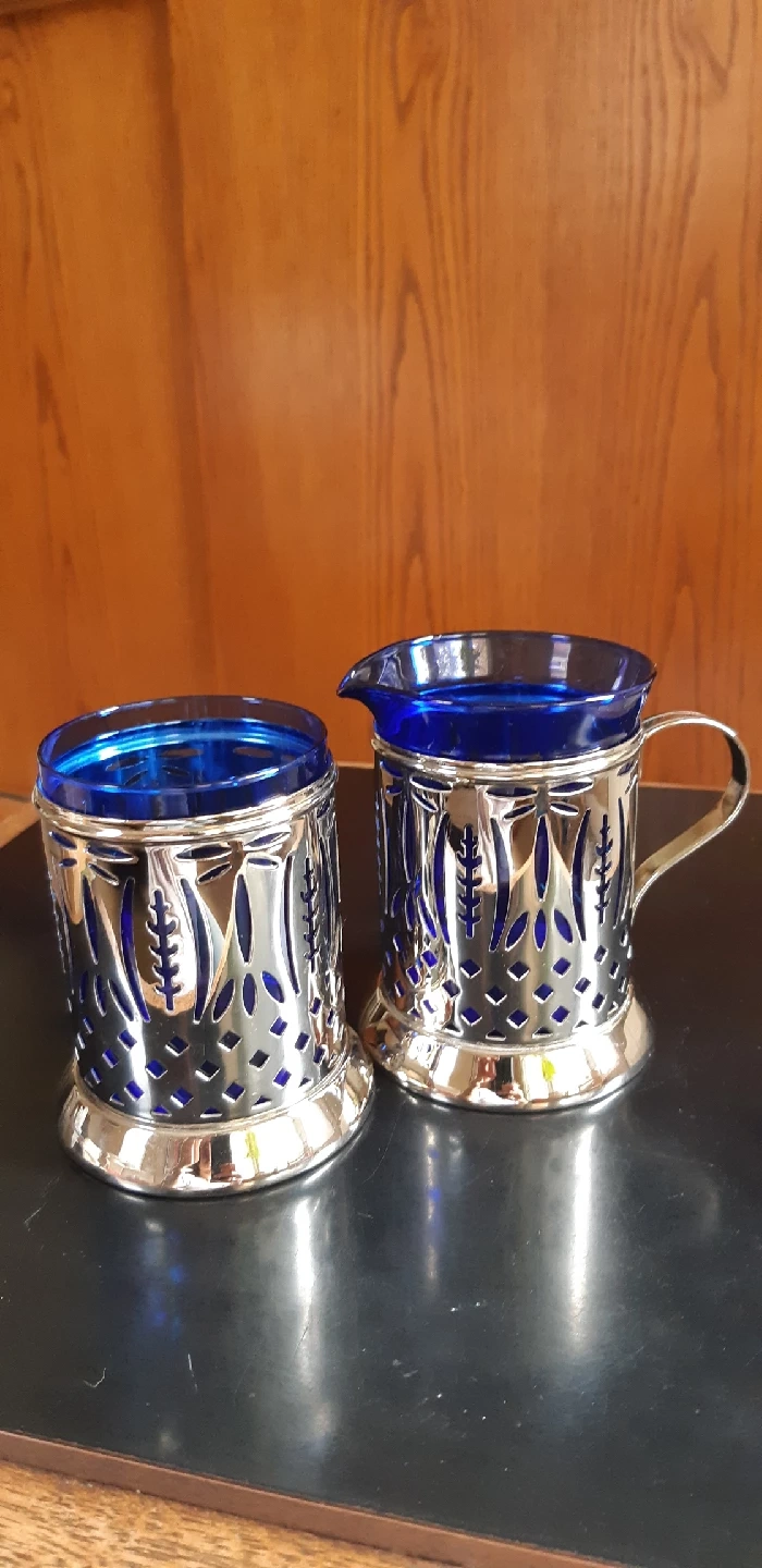 830This is a lovely high quality set from the 1960's. It features pierced silverplate holders and cobalt blue glass inserts. It's in great shape and would look beautiful on any table!