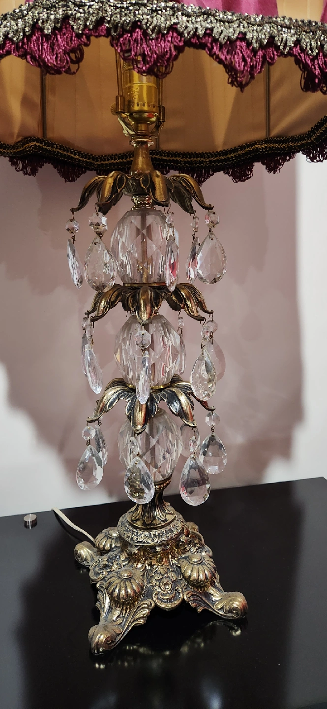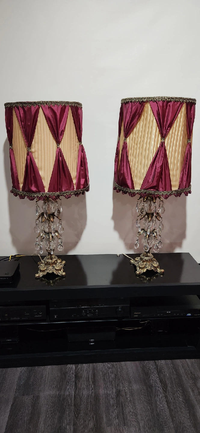 Add a touch of vintage charm to your home with this beautiful crystal accent table lamp! It features a unique design with cascading crystals and a decorative shade. Perfect for adding a warm and inviting glow to any room in your home. $130 each OBO