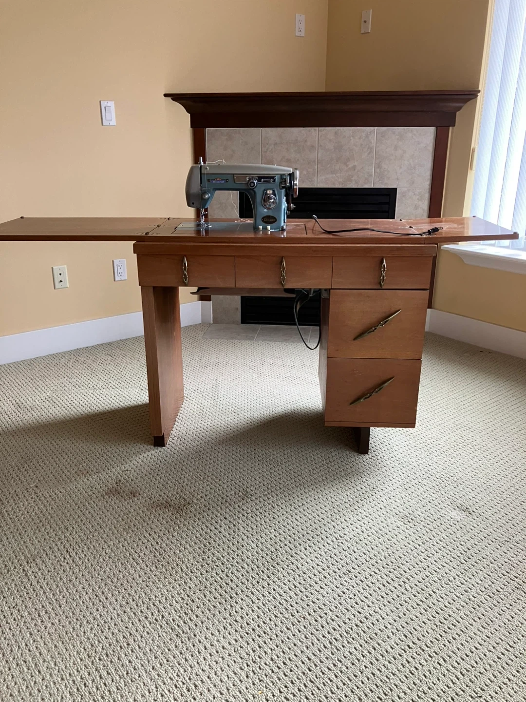 10Selling a vintage Deluxe zig zag sewing machine with a beautiful cabinet. It's a unique piece that would be great for sewing enthusiasts or as a decorative item in your home. The machine is in used condition and shows some signs of wear, but it still has a lot of charm and character