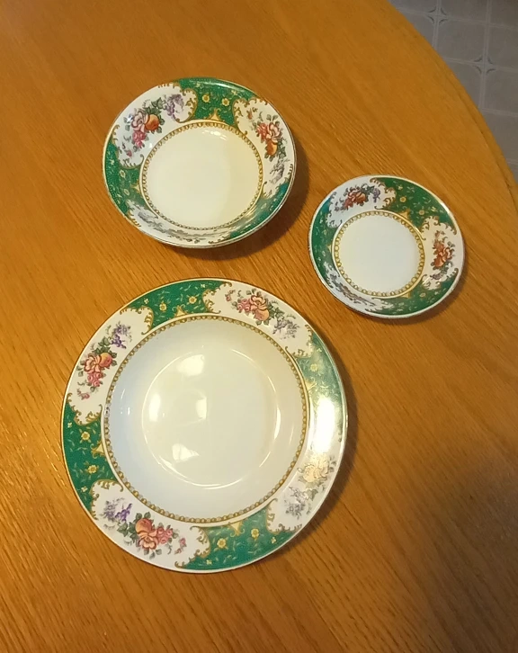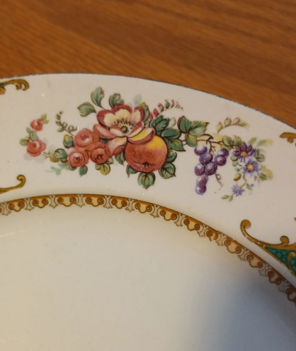 29Vintage dinnerware, Bridgwood and Sons porcelain opaque, early 1900s. Not a total set, listed below 1 cranberry bowl, 2 11 inch platters, 2 9 inch vegetable bowls 2 creamers or gravy boats, 2 cereal bowls, 6 shallow soup bowls, 8 dinner plates, 1 side plate, 1 fruit bowl, 2 teacups, 1 saucer Dinner plates show some marks from cutlery, rest good condition. All for one price $75 Pick up in Pickering, cash sale only