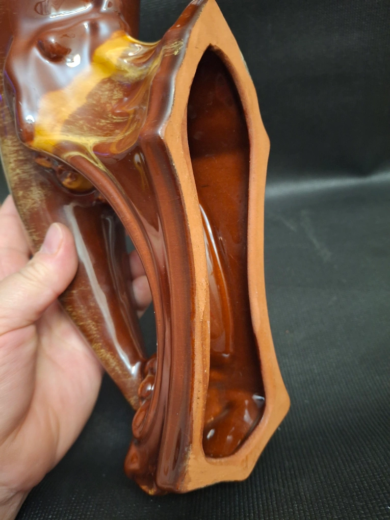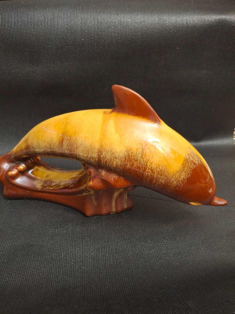 Unique vintage dolphin in a lovely brown and yellow glaze. Great for adding a touch of retro charm to your home decor!