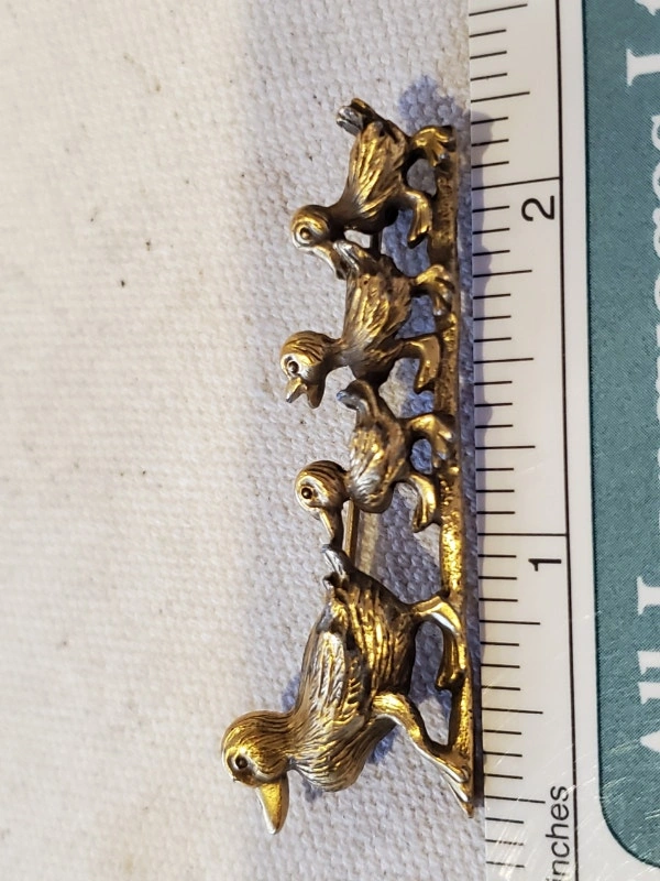 0Sweet little vintage pin/brooch, brass-coloured "Ducks in a Row" - $5.00, pick up only.