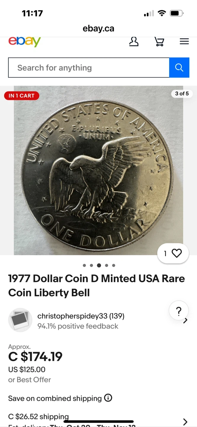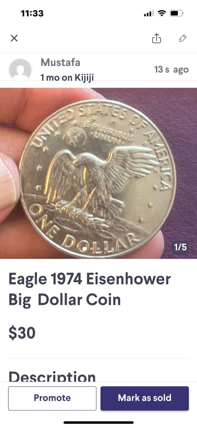 21 dollars each Best offer accepted Selling a 1974 1978 Eisenhower Eagle One Dollar Coin. From the screenshot I saw on Kijiji, someone was selling it for $30!