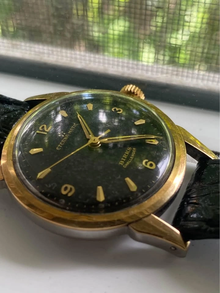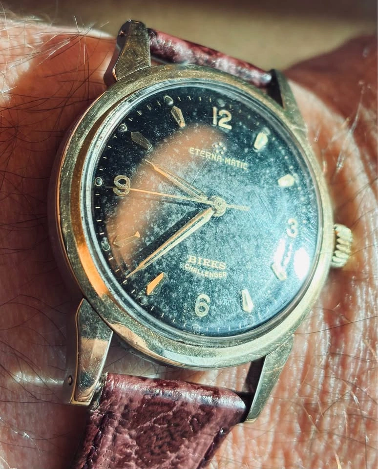 Nice multi branded ( Eterna Matic and Birks) vintage watch Runs well - Automatic 34 mm before crown Nice patina on face