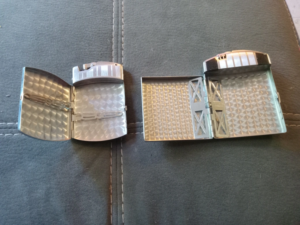 21Selling a set of vintage Evans cigarette lighters and cases. They have a classic design and would make a great addition to a collection or for use. Both items show some signs of wear consistent with their age, but are still in good condition overall