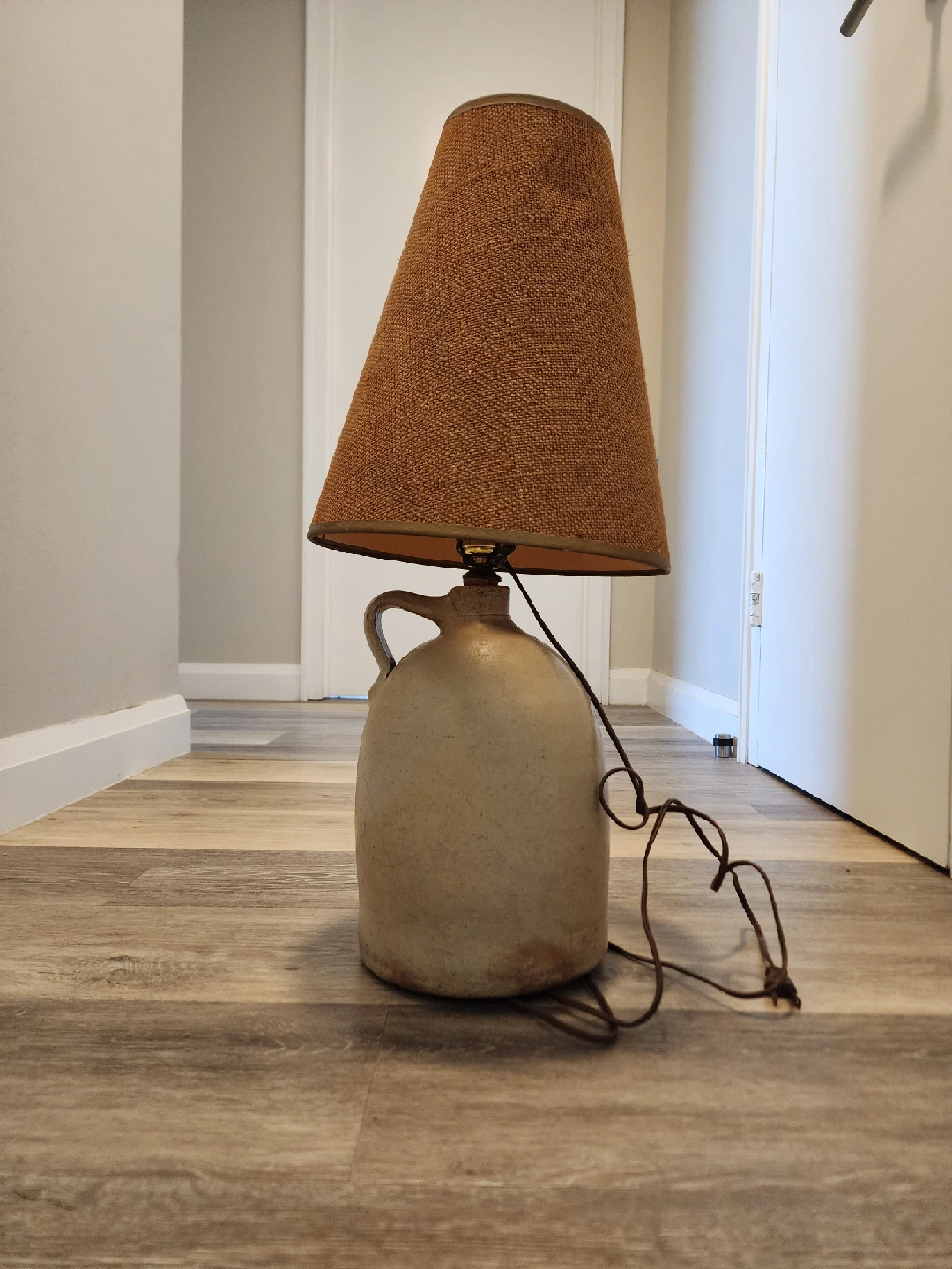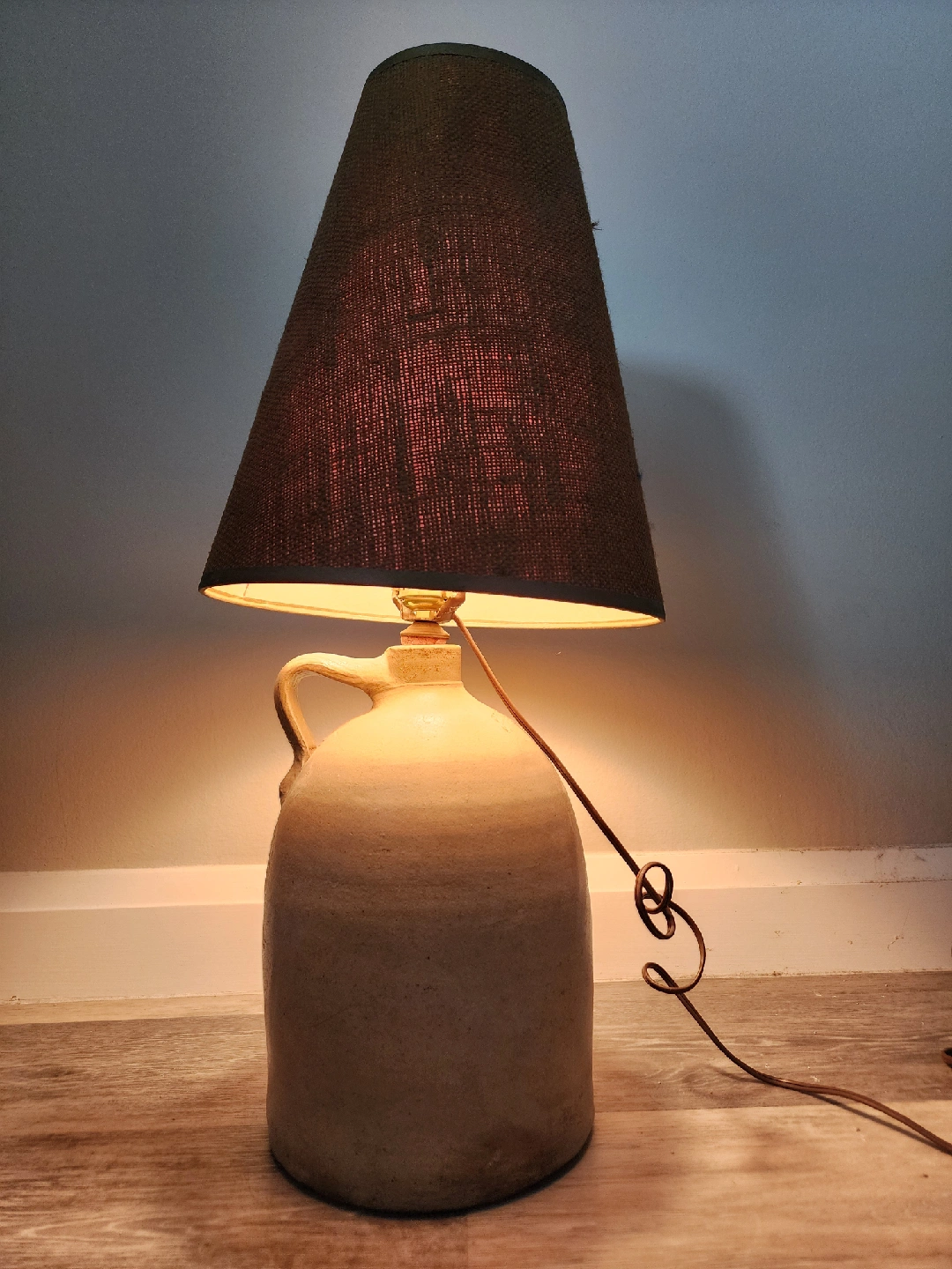 Selling a unique vintage lamp featuring a stoneware base from Farrar Pottery. It has a rustic charm and would look great in a variety of settings. The shade is a burlap-like material. It's in good condition and ready to brighten up your space. hight 63 centimetes pick up only, near yong and eglinton