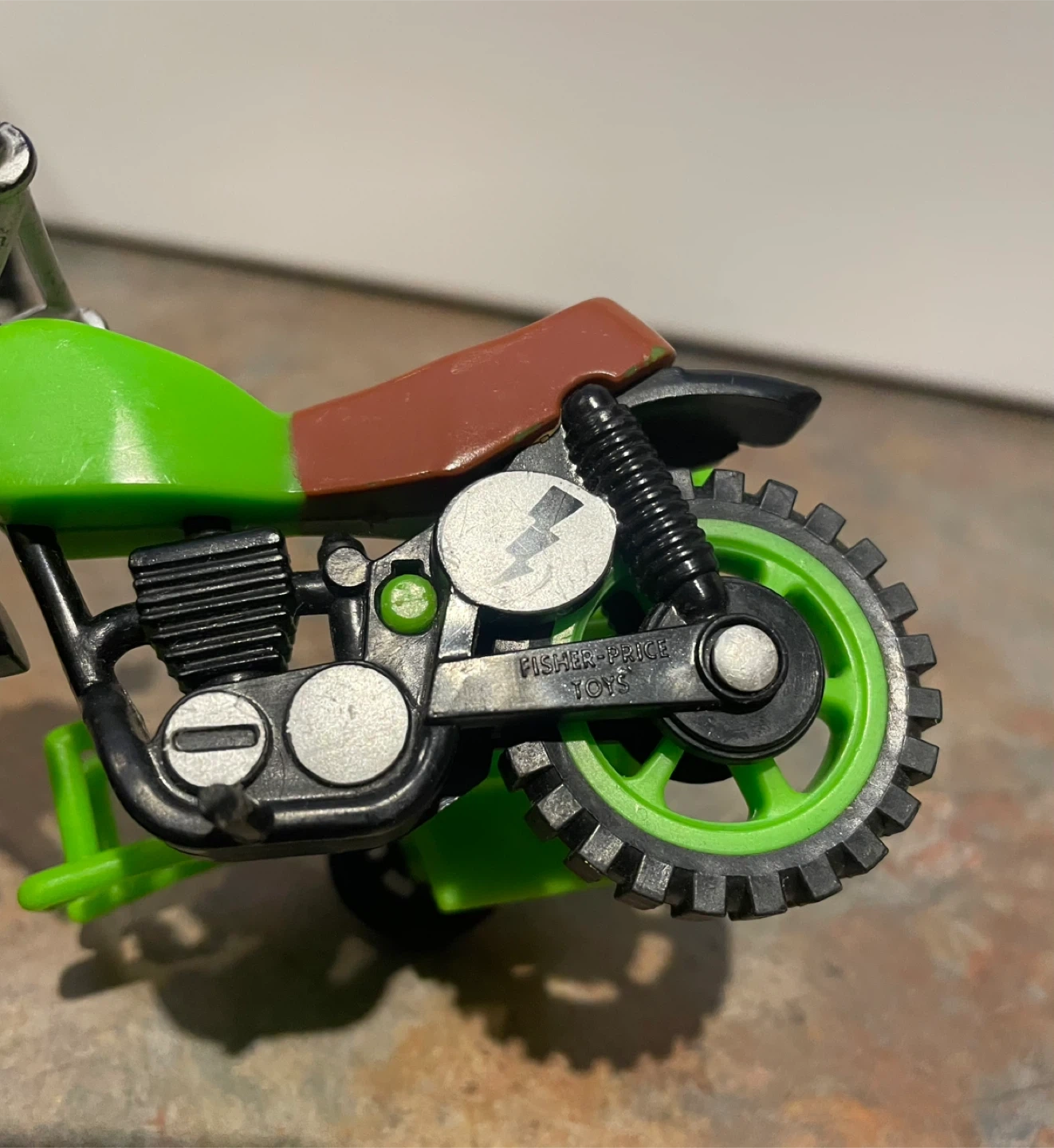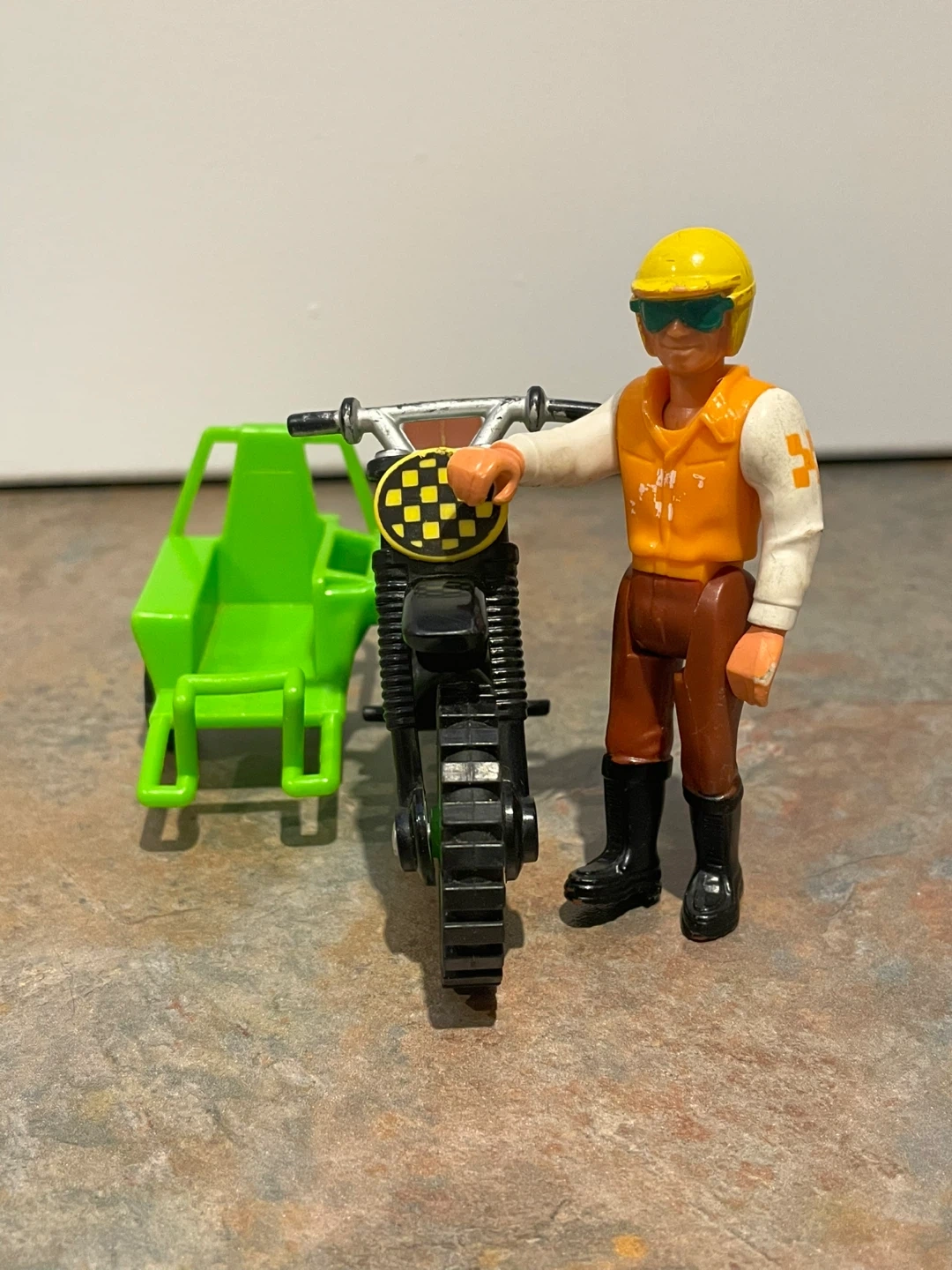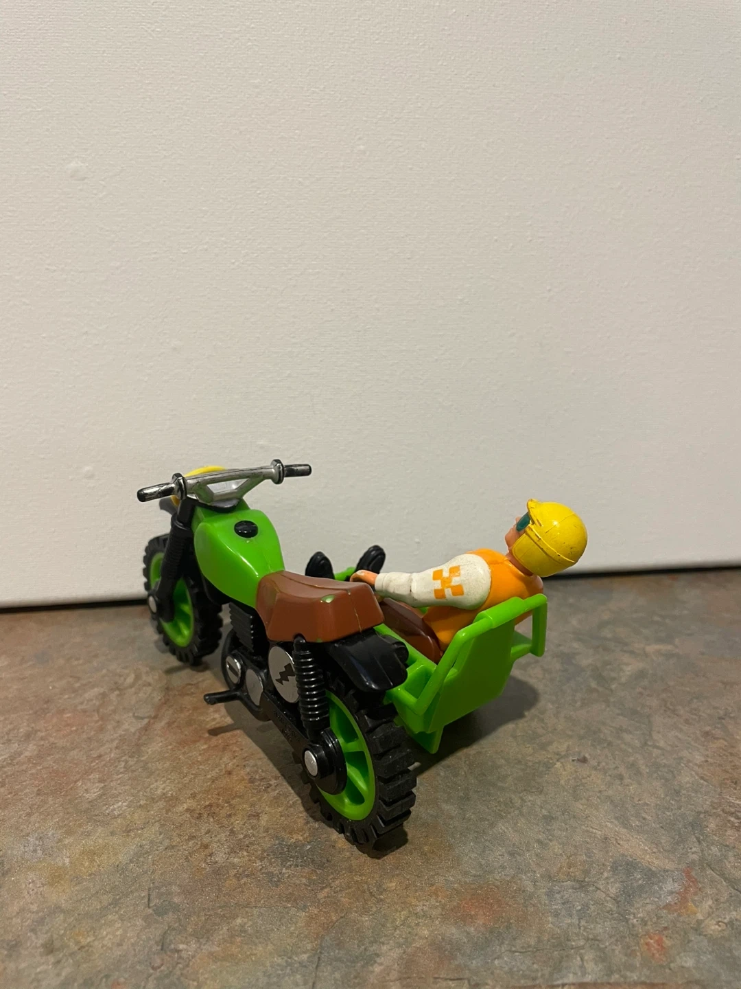 31Cycle Racing Team Action Cycle 5" Adventure People Fisher-Price. Includes cycle, sidecar and sidecar rider, Vince. Has some wear. Pick up in East Kildonan, cash please, no delivery