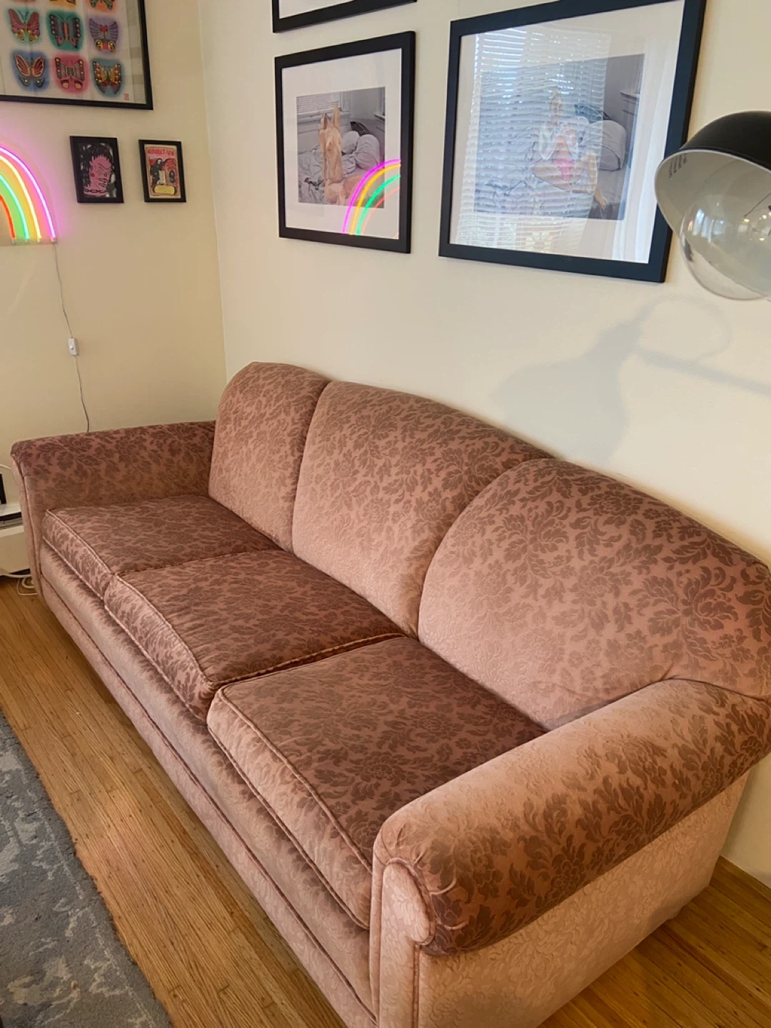 25Selling a lovely vintage sofa and armchair set! The set features a unique floral pattern in a warm, inviting colour. Perfect for adding a touch of retro charm to your living room or den. Both the sofa and armchair are in good condition and ready to find a new home! Needs two people to carry as I have a very bad back & cannot assist - must be able to carry downstairs from second floor of a walk up