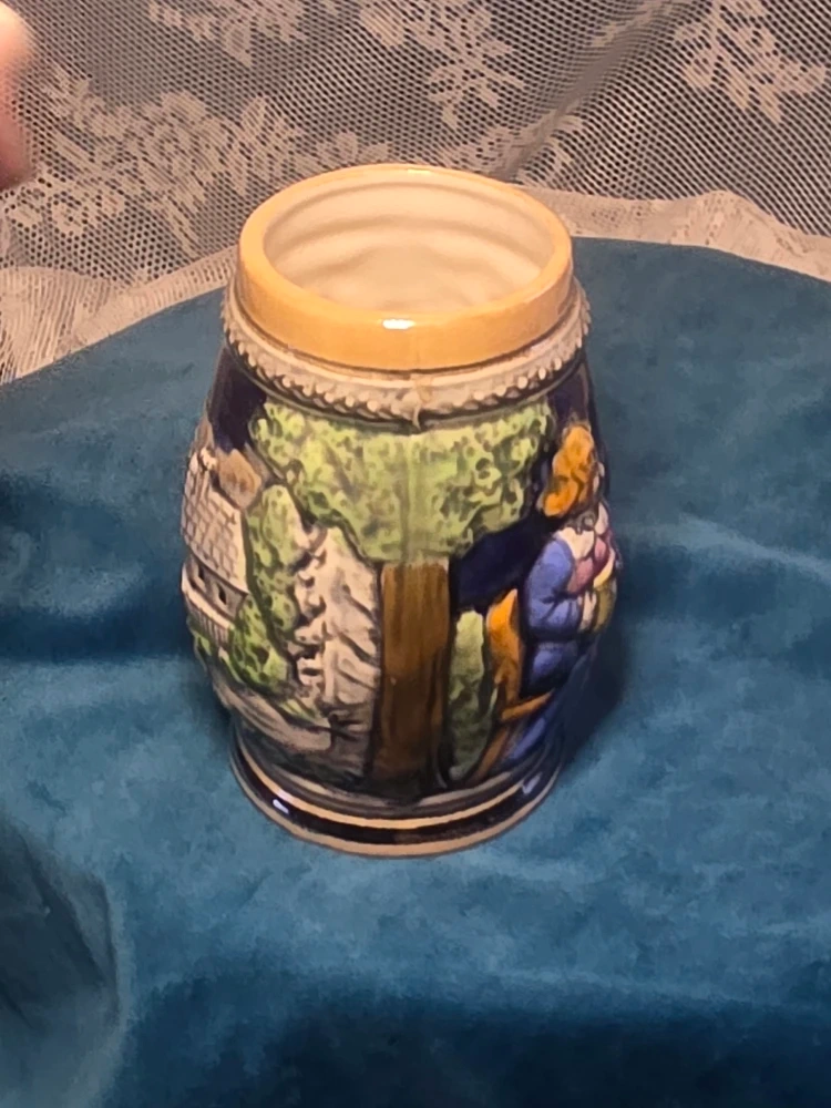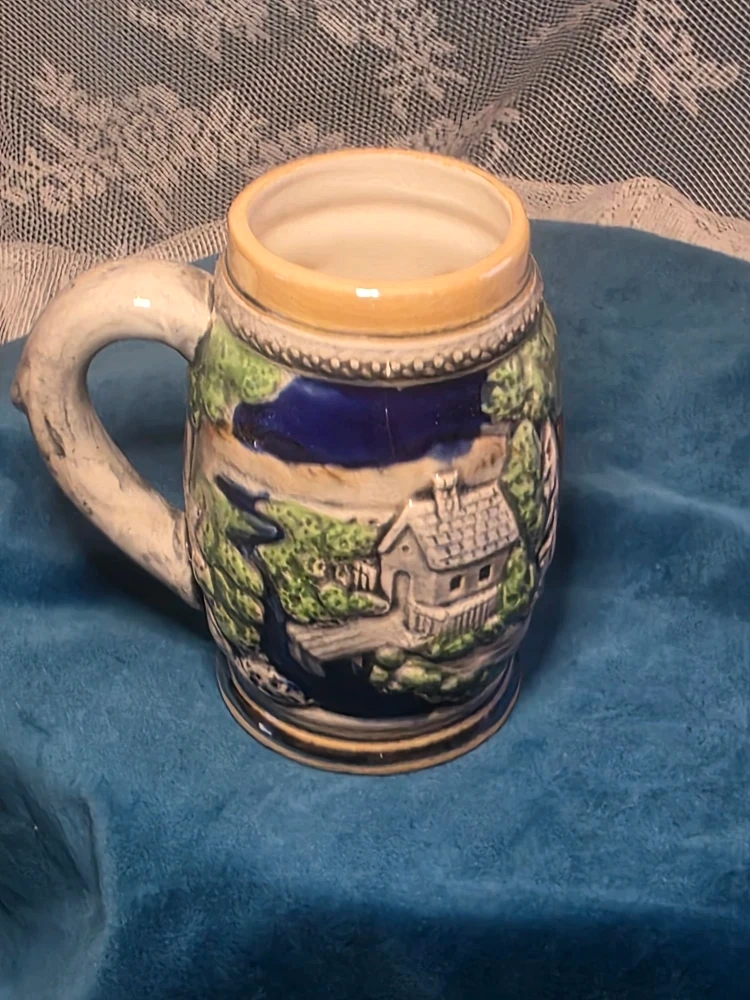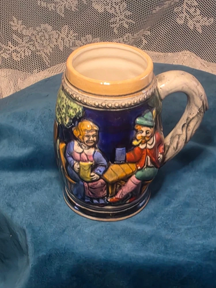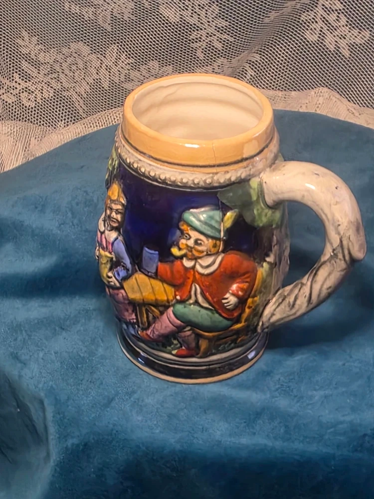 Selling a vintage beer stein mug from GC Japan. It's a hand-painted ceramic mug with a detailed design. Perfect for collectors or anyone who appreciates unique drinkware!