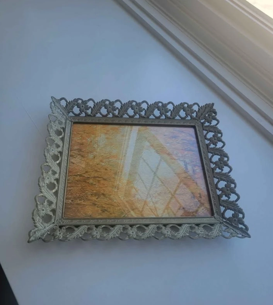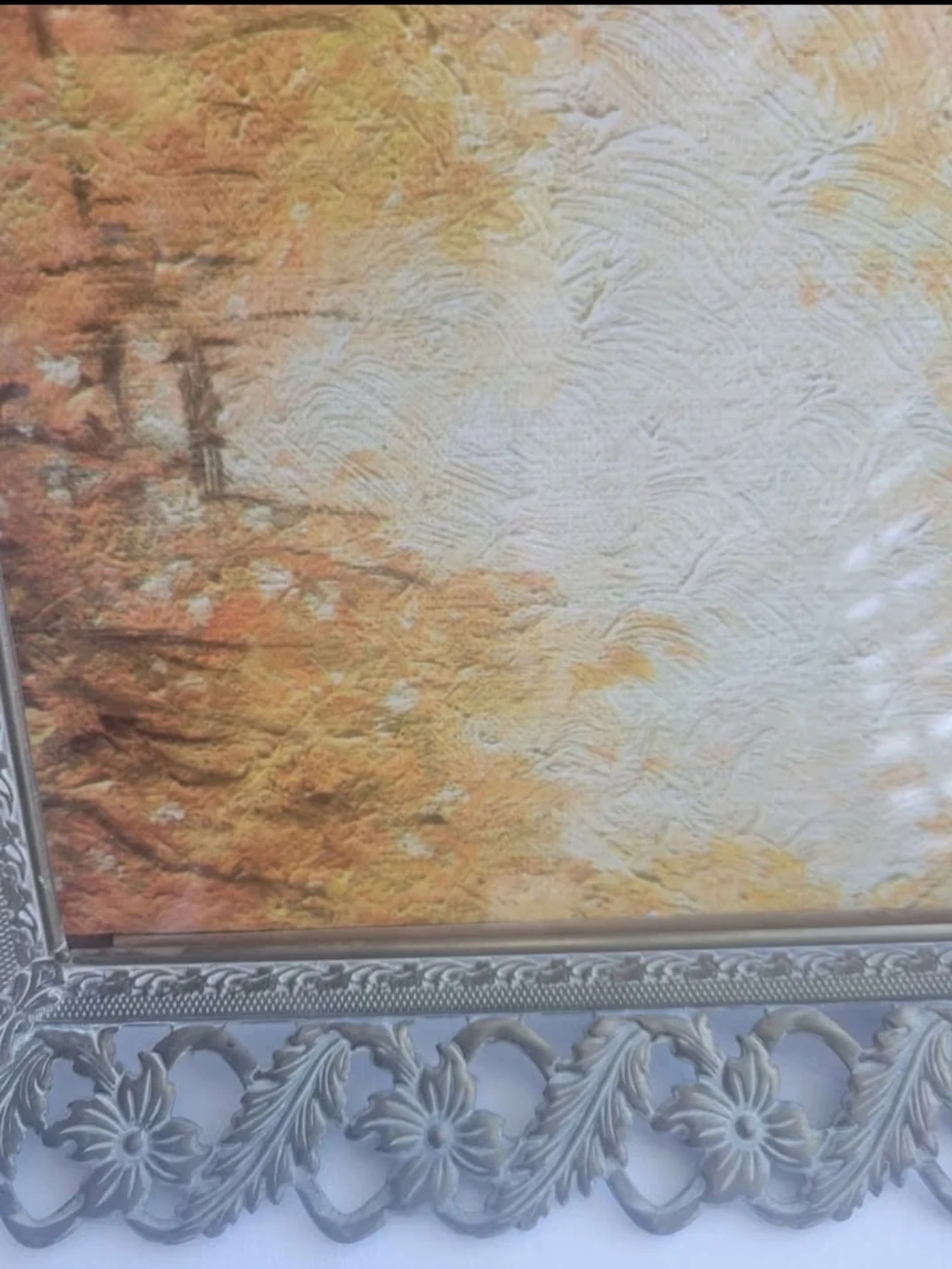 103Stunning Ornate Gold Vintage Filigree Picture Frame. Glass Hook on back Art included, can be easily changed out. 10-1/4" x 12-1/4" Frame Inside 9-1/4" x 7-1/4" $30 Fennell and Upper gage Hamilton Please view my many listings