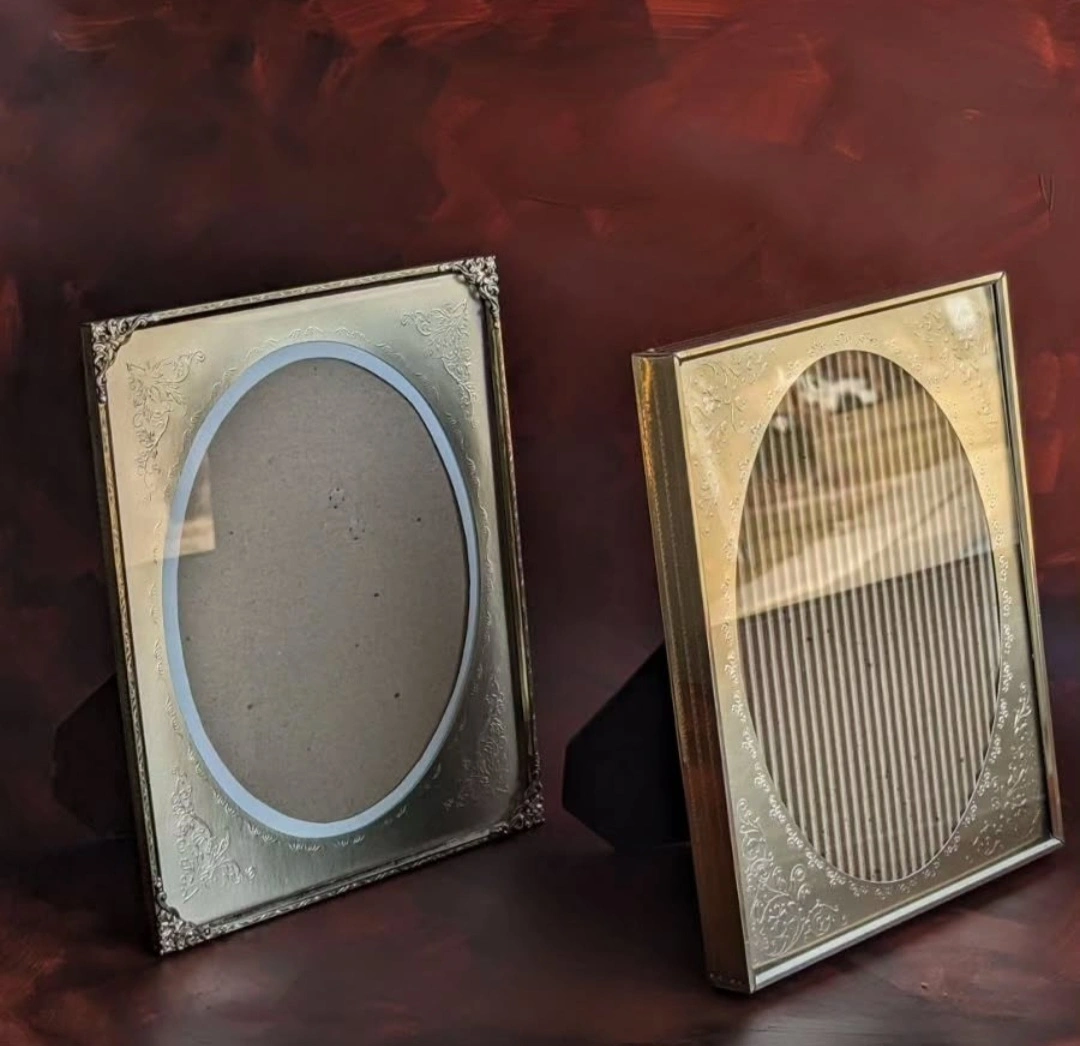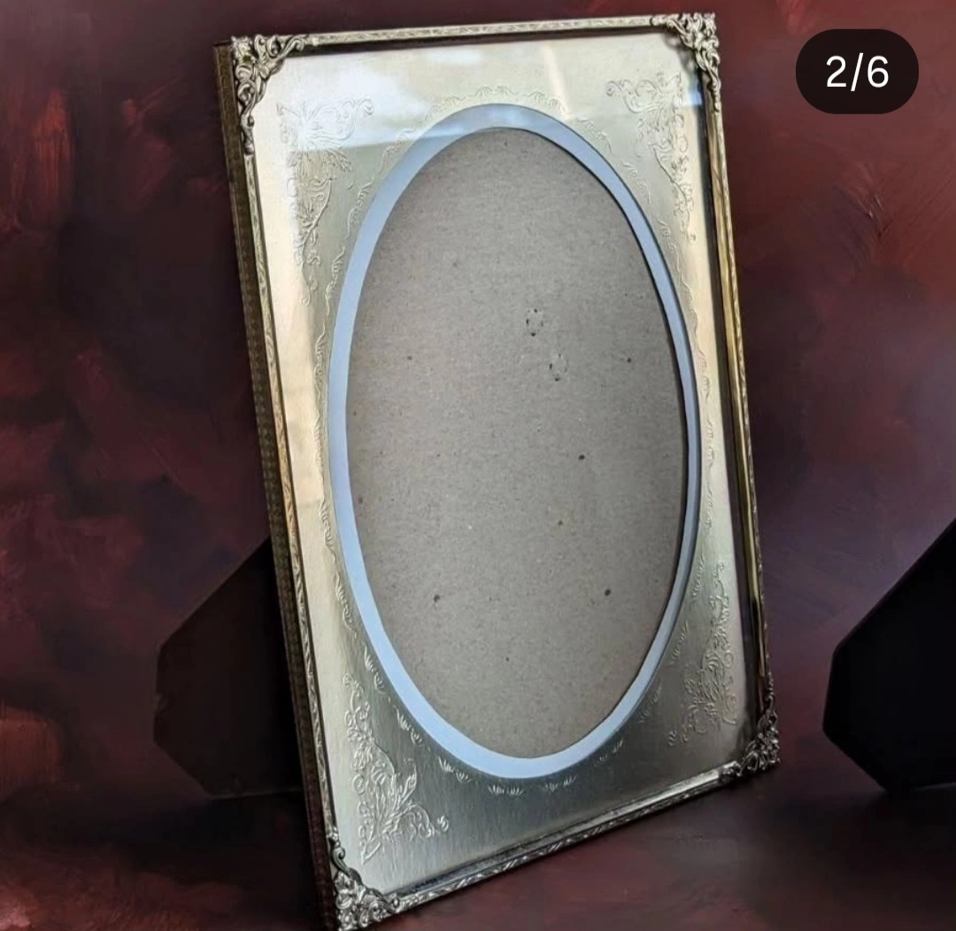 103Two Vintage Brass Oval Ornate Picture Frames! 8 x 10 Engraved Metal Mats. Cardboard stands. Excellent Condition. $25 each. Cash both $40 No shipping Fennell and Upper Gage Hamilton ●● house with parking Please view my many listings