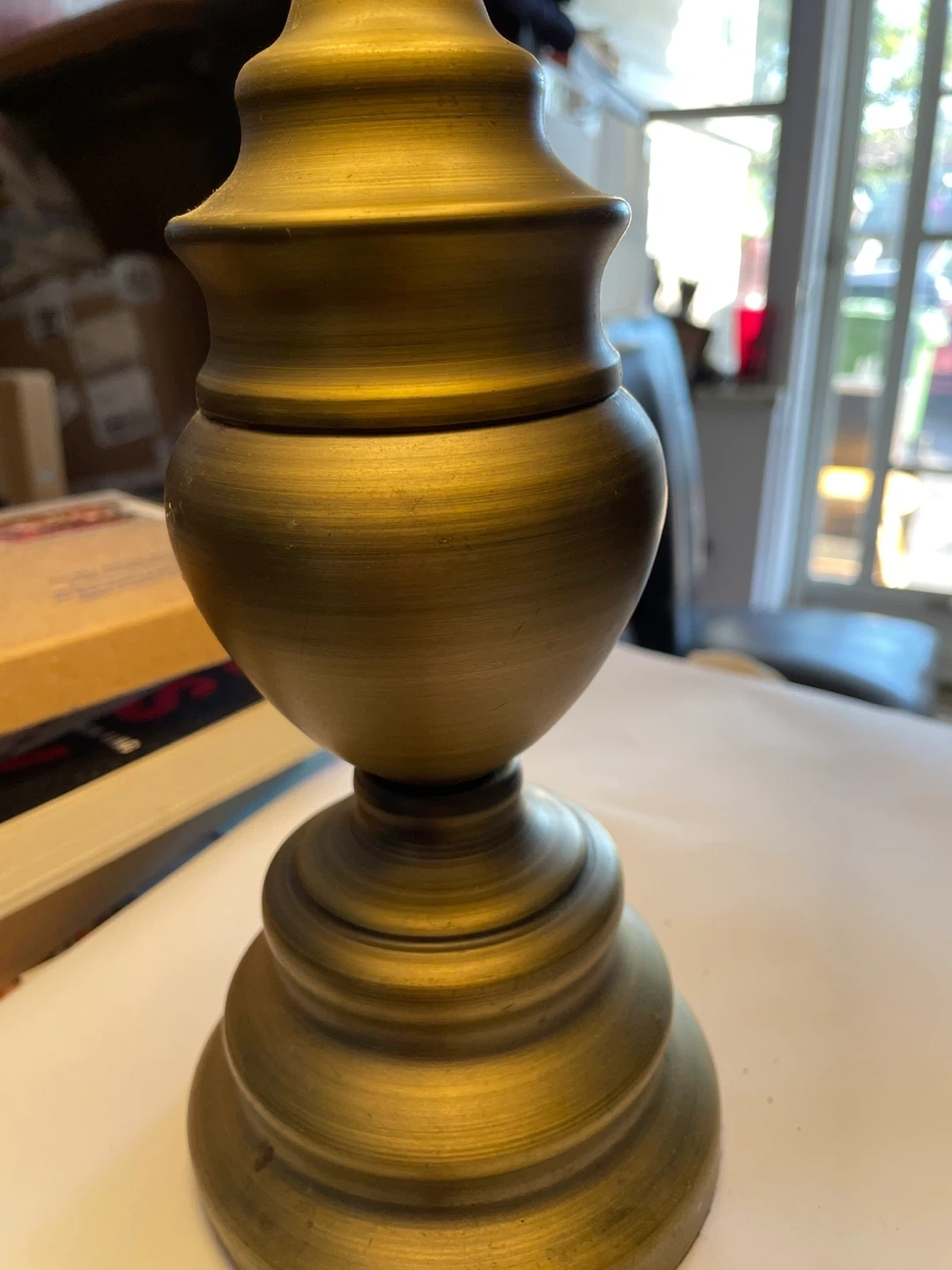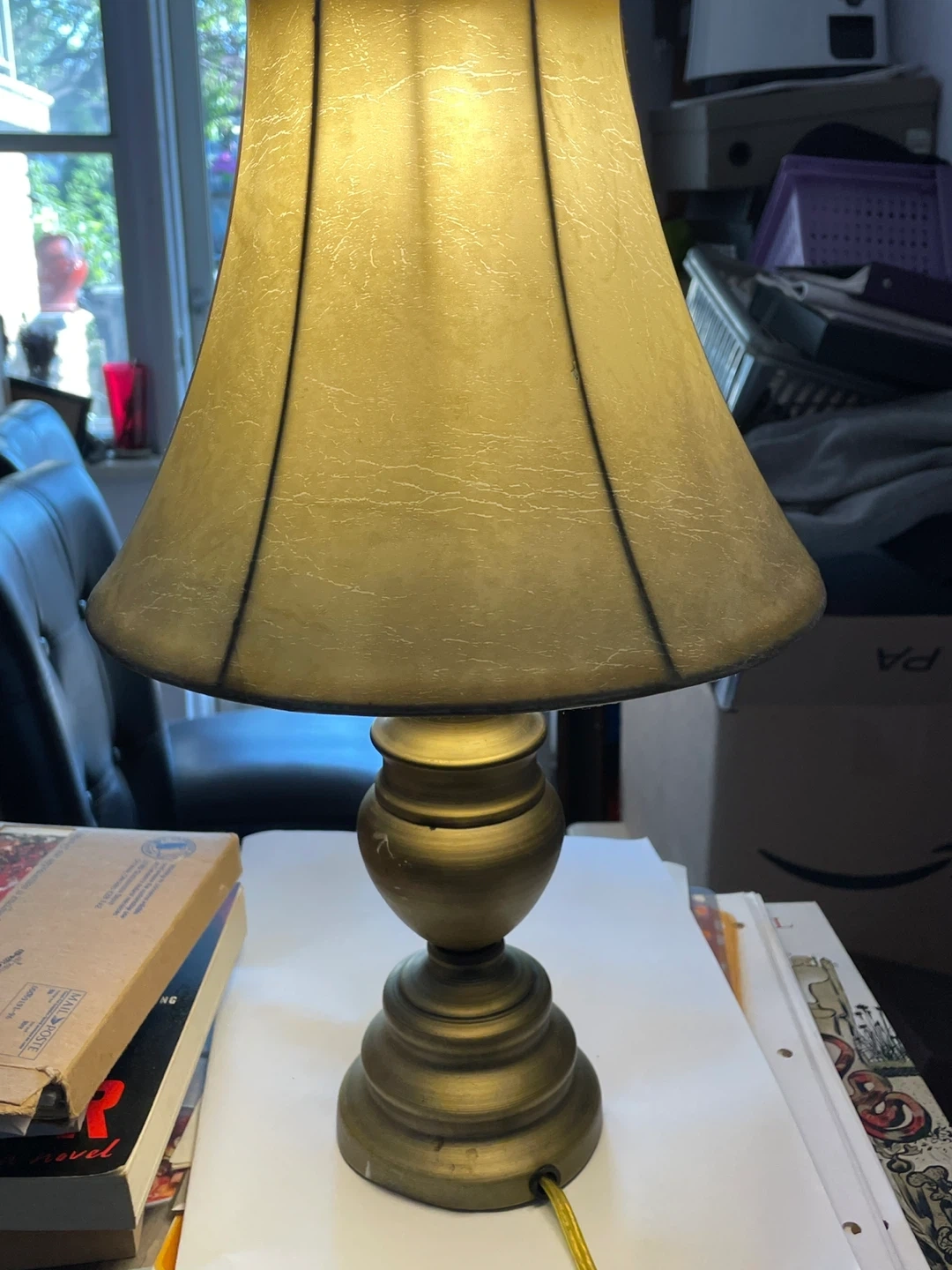 Selling a vintage gold table lamp. It has a classic design and would look great in any room. It's in good condition and ready to brighten up your space
