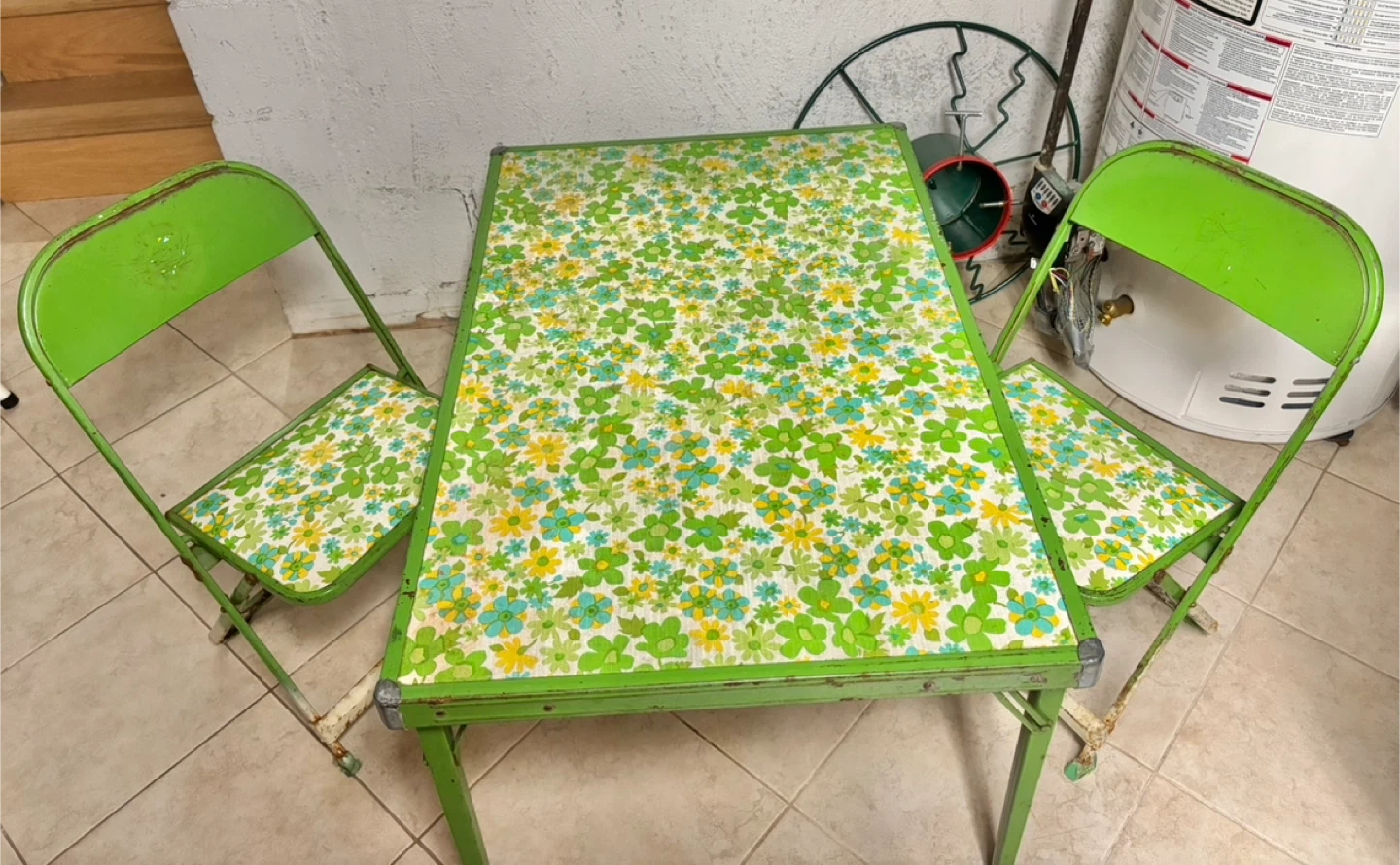Vintage Green Floral Child’s Folding Table & Chairs Set