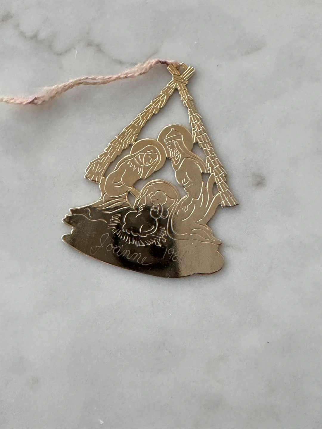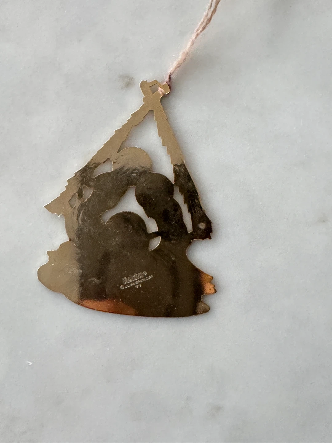 270Selling a vintage Hallmark ornament from 1979. It's a beautiful gold-tone depiction of the Nativity scene, perfect for adding a touch of classic charm to your Christmas tree