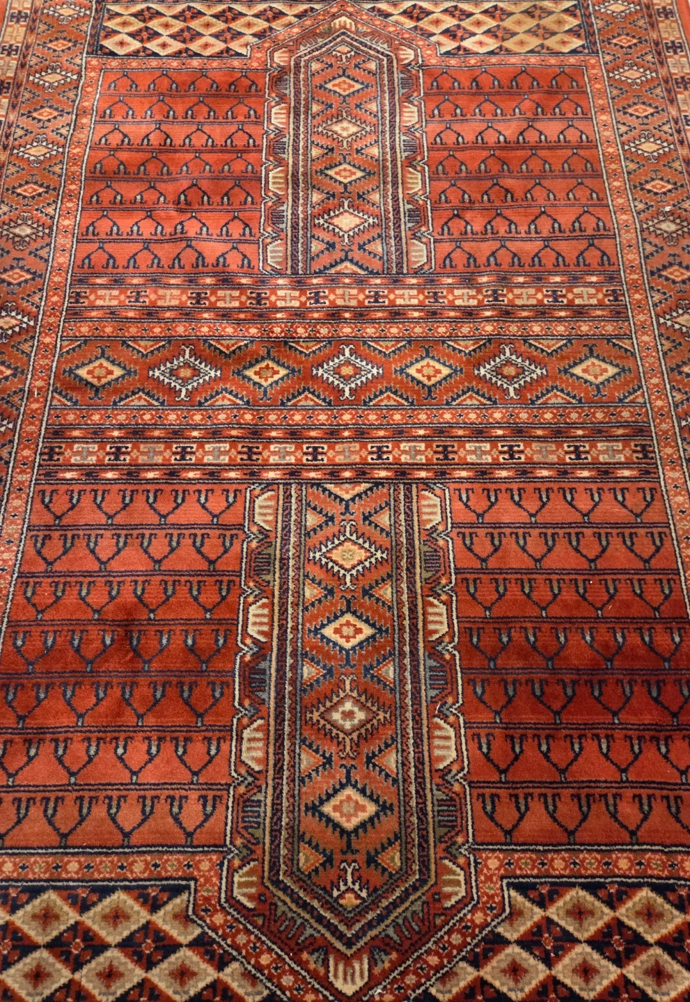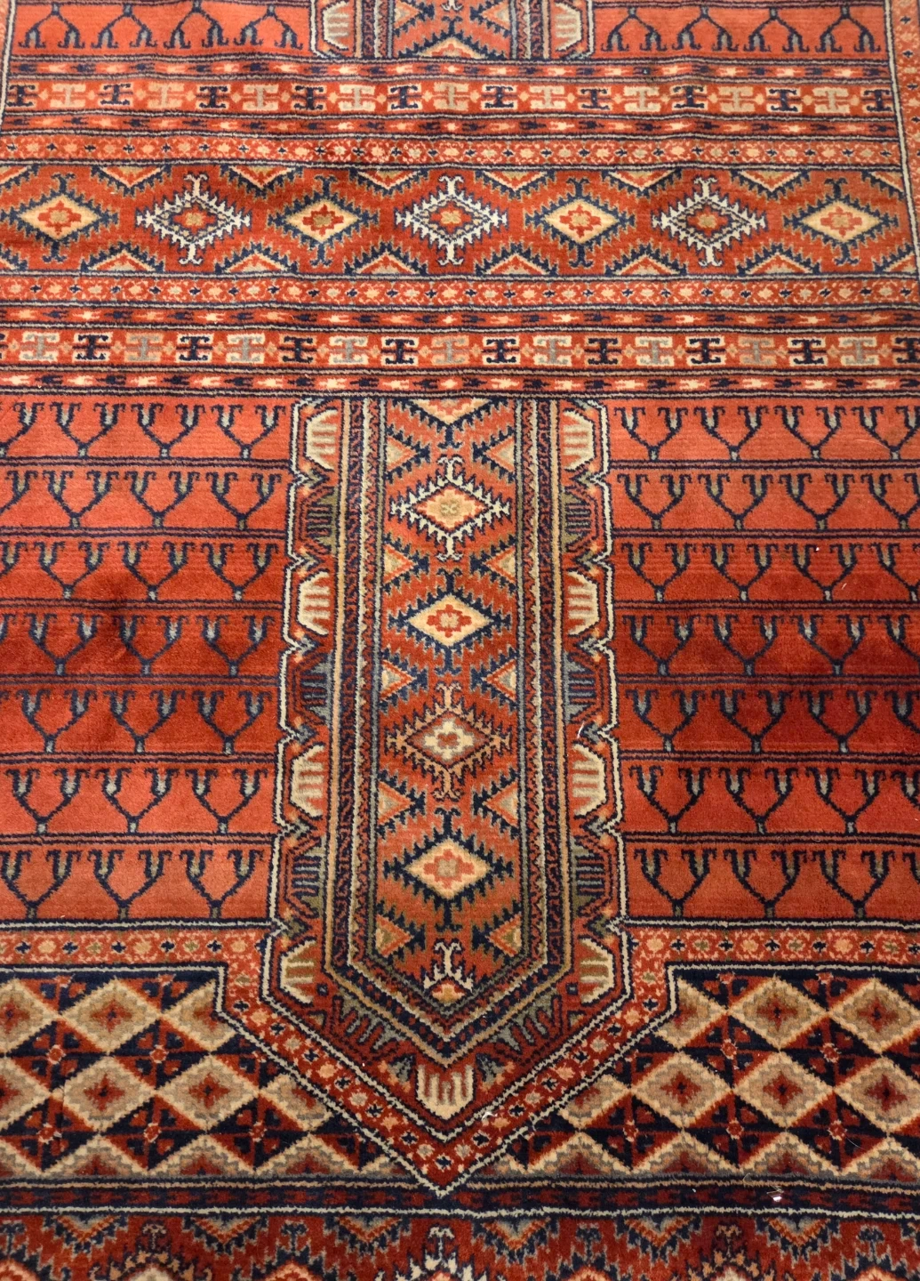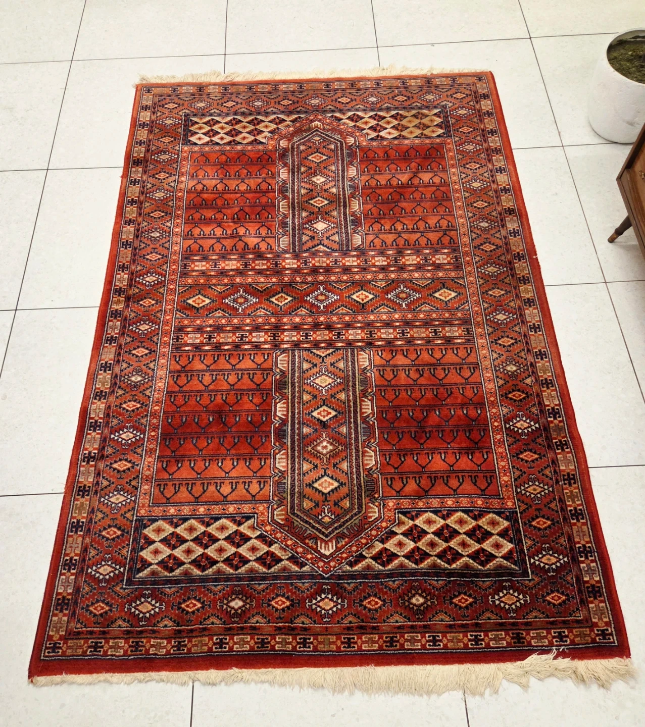 91Large vintage hand knotted Turkmen design area rug with vibrant colors and and intricate tribal patterns. Dimensions: 82" × 53" Pick up in downtown Vancouver or delivery may be arranged for a reasonable fee. Follow us on Instagram: https://www.instagram.com/west.end.trends/ Tags: retro vintage antique 1940s 1950s 1960s 1970s 1980s handmade hand knotted wool Persian Iran Afghanistan afghani Caucasian rug carpet living room bedroom dining room silk tabriz Eastern persian Iran hand woven silk genuine authentic Pakistan tribal geometric living room bedroom dining room hadji Segal bidjar bijar area rug carpet runner thick pile Afghani Afghanistan 100% wool genuine Sarouk