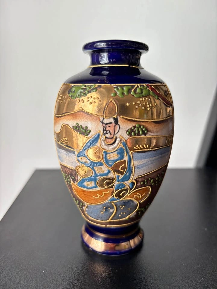 65This beautiful vintage Japanese Imari cobalt blue porcelain figural vase is a must-have for any collector. Made in Japan, this vase is a true work of art. The intricate Hand-Made details and delicate design showcase the Japanese culture's exquisite attention to detail. It is about 4 5/8β H and 3β W Asking $30 or best offer. Pick up in Brighton! Check my other listings for deals and bundles! π