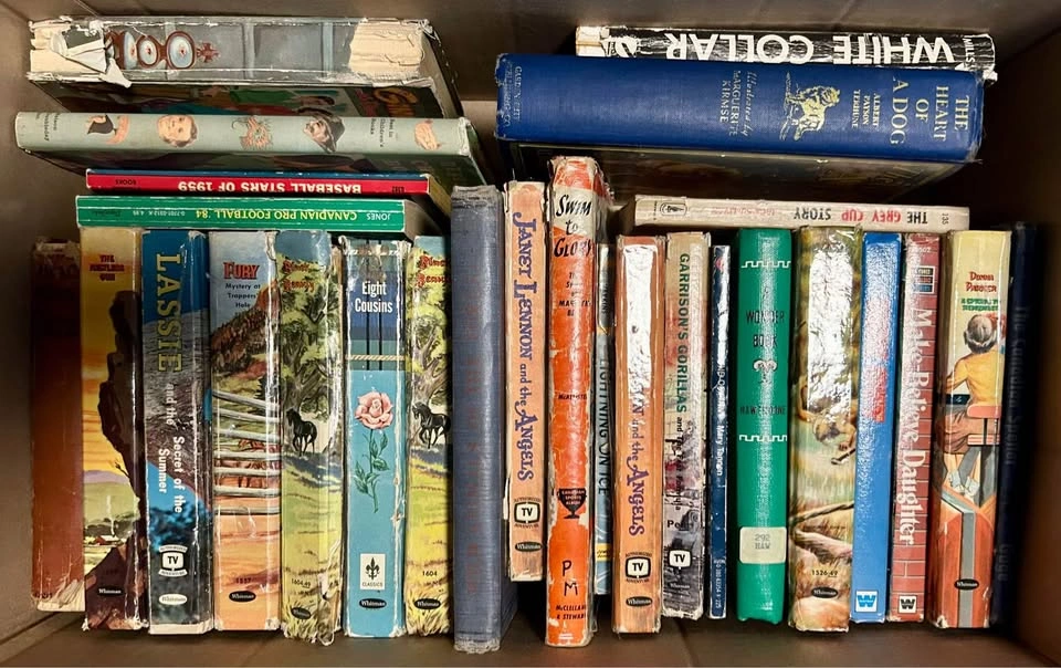 71Selling a mixed lot of vintage hardcovers from the mid-1900s, including Whitman “Authorized TV Adventure” titles, children’s classics, Canadian sports history books, and other collectible hardcovers. Highlights include: • Whitman TV tie-ins like Lassie, Fury: Mystery at Trapper’s Hole, The Restless Gun, Janet Lennon and the Angels, Garrison’s Gorillas, Lightning on Ice • Classic literature: Black Beauty, Eight Cousins, The Last Trail (Zane Grey), A Wonder Book (Hawthorne), The Heart of a Dog (Albert Payson Terhune) • Canadian & sports history: The Grey Cup Story, Canadian Pro Football ’84, Baseball Stars of 1959 • Miscellaneous vintage hardcovers: Make Believe Daughter, Swim to Glory, White Collar, The Canadian Speller, and more ⚠️ Condition: These books are in used to rough condition. Some covers are worn, spines cracked, and pages aged. They are sold as-is. Great for collectors, vintage book lovers, or display. 📷 Disclaimer: I’ve done my best to describe the titles, but there may be mistakes. Please look closely at the photos to confirm exactly what’s included before buying. 💵 Price is for the entire lot. 📍 Pickup with cash or e-transfer at 310 25th St W, Saskatoon.