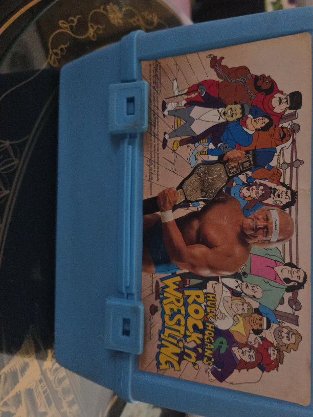 Selling a vintage Hulk Hogan's Rock 'n' Wrestling lunchbox! It's a classic piece of memorabilia featuring Hulk Hogan and other wrestlers. Includes a matching thermos inside. Great for collectors or anyone who loves retro wrestling items