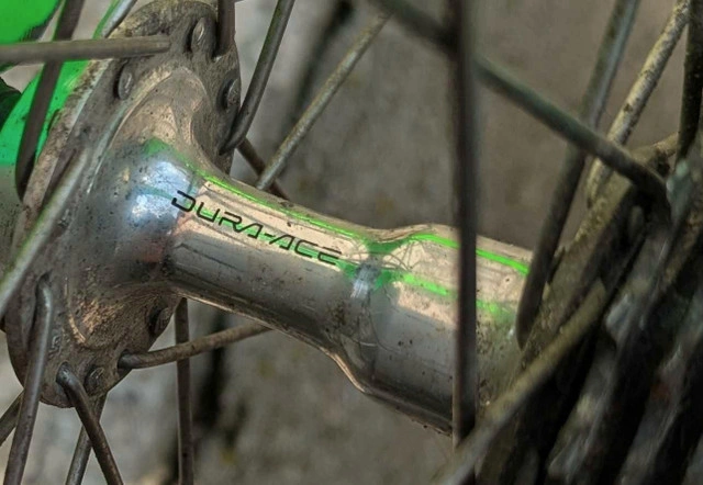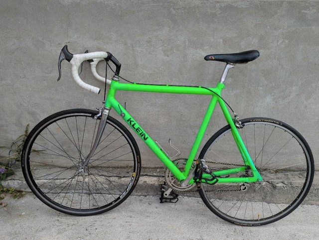 58cm Lightweight All Dura Ace components except front wheel/hub which is Ultegra No front derailleur attached but shifter is there if you want to install one. Almost new Continental Gran Prix tires Avocet O2 Titanium Saddle I'm selling a vintage Klein Quantum road bike, a true collector's item. This bike features a vibrant green frame and is equipped with Dura-Ace components. It's a classic ride for any cycling enthusiast. This bike has seen some action and is being sold in used condition. * **Frame:** Klein Quantum * **Components:** Dura-Ace *. Tires : **Continental Gran Prix This vintage beauty is looking for a new home. It's ready to hit the road and turn heads! If the ad is up, it's available!