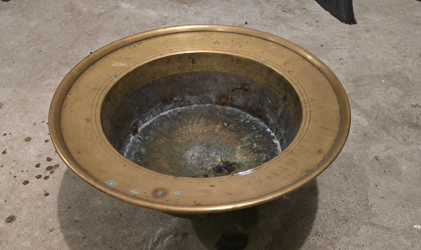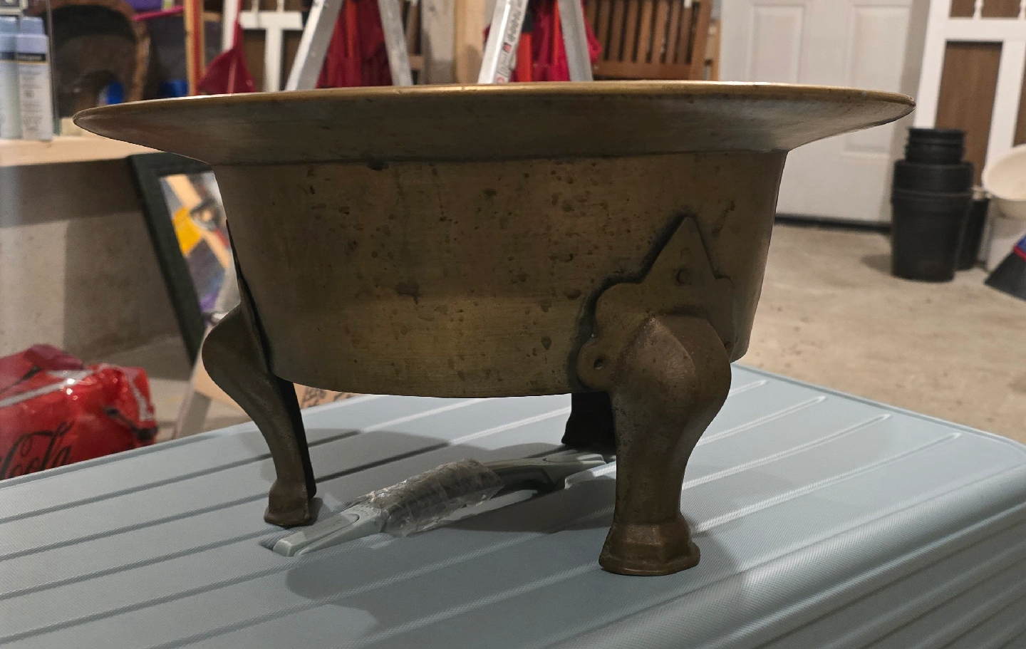 Vintage Korean Brass Brazier Traditional 3-Leq Fire Pot) - Antique Decor - OBO Description: Beautiful vintage Korean brass brazier (samjok hwaro), made of solid brass with three sturdy legs Traditionally used for heating or tea preparation, now perfect as a decorative antique, planter, or incense holder It has natural patina and oxidation from age, adding to its authentic character Solid and heavy Oriain: Korea • Material: Solid brass (heavy) • Condition: Aged patina, signs of use, no cracks or structural damaqe • Dimensions: approx. [insert diameter cm/inches] wide x [insert height cm/ inches tal • Pickup: Vancouver area • Price:$ 200 OBO (or best offer Would make a great display piece for an Asian-inspired interior or antique collection. Serious buyers only, please message for more photos or details - not a replica