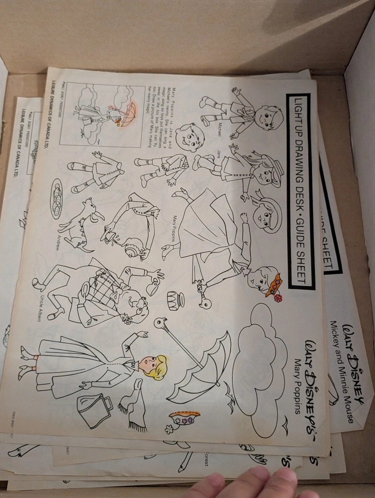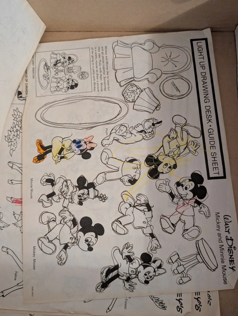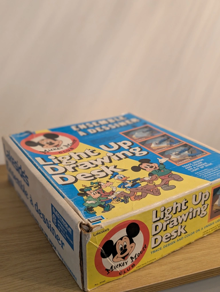 Selling a vintage Lakeside Light-Up Drawing Desk! It comes with the original box and guide sheets featuring classic Disney characters. This drawing desk uses a light table to trace and colour designs. Some of the guides sheets are used/marked.